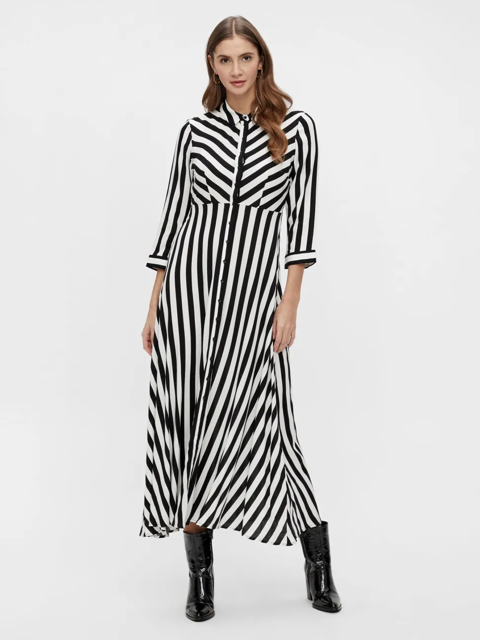 Y.A.S naisten maksimekko, jossa kaulus. Mekon edessä napitus ylhäältä alas asti. Normaali istuvuus ja kevyt kangas tekevät mekosta tyylikkään valinnan moniin eri tilaisuuksiin.