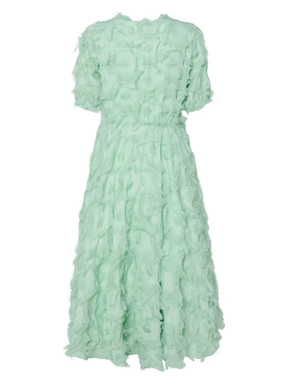 Naisten kaunis midimekko upeilla 3D-höyhendetailjeilla. Hameesta löytyy vuorikangas ja kerros tylliä tuomaan voimakkaamman A-linjan helmaan. Loistava valinta kesän tulevia juhlia varten!