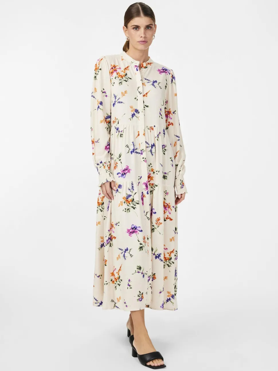 Y.A.S Asina -maksimekko on elegantti ja naisellinen valinta, joka sopii niin arkeen kuin juhlaan. Mekossa on kaunis kukkakuosi ja seuraavat yksityiskohdat: