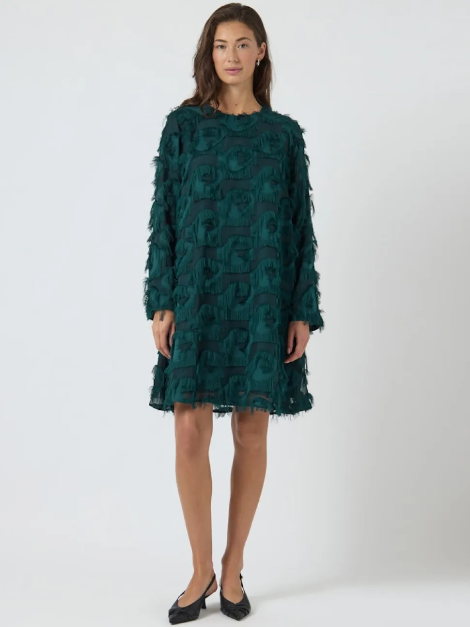 Y.A.S YASDIO LS Short Dress on kaunis ja ajaton mekko, joka toimii monenlaisissa tilanteissa. Ponderosa Pine ‑sävy on kaunis ja helposti yhdisteltävä, ja mekon selkeä leikkaus tekee siitä mukavan käyttää. Pitkät hihat, pyöreä pääntie ja hieman A-linjainen helma tuovat yksinkertaista tyyliä, joka sopii niin arkeen kuin rennompiin juhliin. Yhdistä tennareihin tai nilkkureihin – tämä mekko on helppo valinta vuoden ympäri.