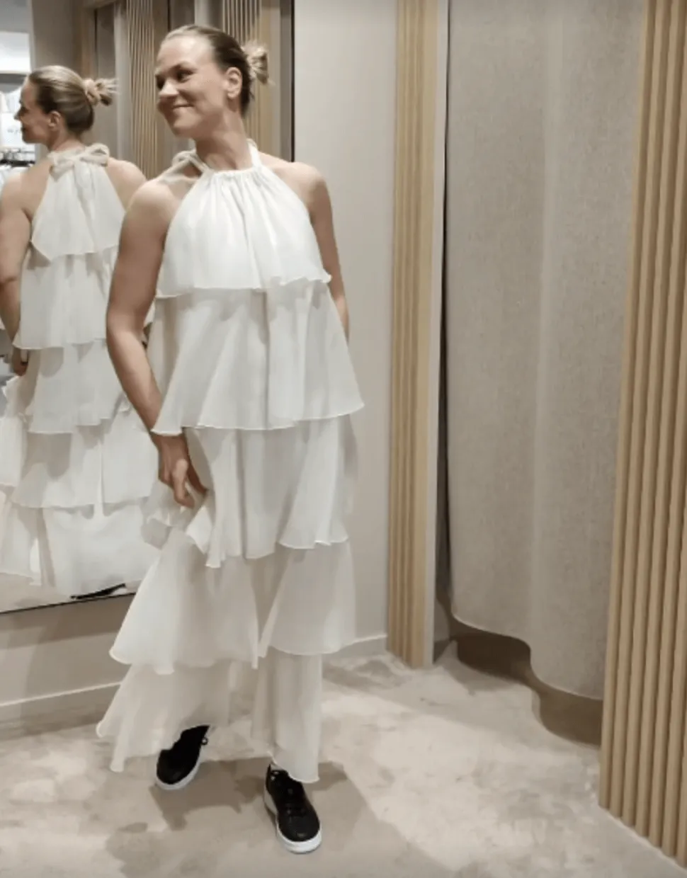 – Tuotetyyppi: mekko – Pääntie: halterneck-malli – Hihat: hihaton – Pituus/koko: maksipituinen – Malli: regular fit