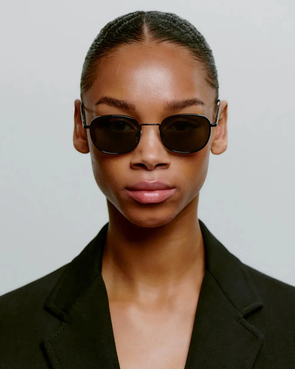 Yli 50 % kierrätysmateriaaleja”>Uudelleentulkinta HELLOsta. 60-luvun Hollywoodin inspiroima nelikulmaiset linssit tyylikkäässä metallikehyksessä, joka kehystää kasvot erottuvalla mutta ajattomalla tavalla. Klassinen elokuvatähti tunnelma.