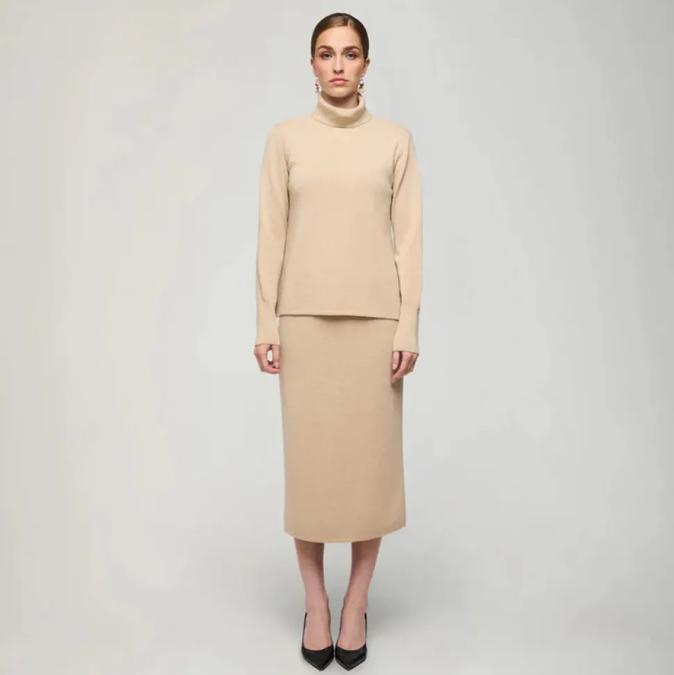 Ajaton ja helppokäyttöinen Nomi-pooloneule on, kestävä ja helppohoitoinen klassikko. Neuleessa yhdistyy kauniisti hieman A-linjainen malli, istuva yläosa, korkea poolokaulus, helman halkiot sekä pitkät hihat. Nomi-neule on tyylikäs luottovaate, jonka Aarikan puunappi viimeistelee kauniisti.