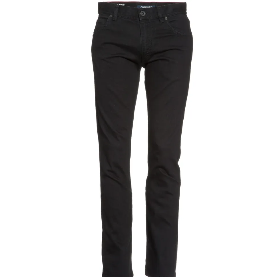 Miesten mustat, joustavat farkut normaalimitoituksella. Mukavat jalassa, suorat lahkeet. Kankaassa käytetty T400-teknologiaa.Kuivuvat nopeasti, ei ryppyjä eikä polvipusseja.