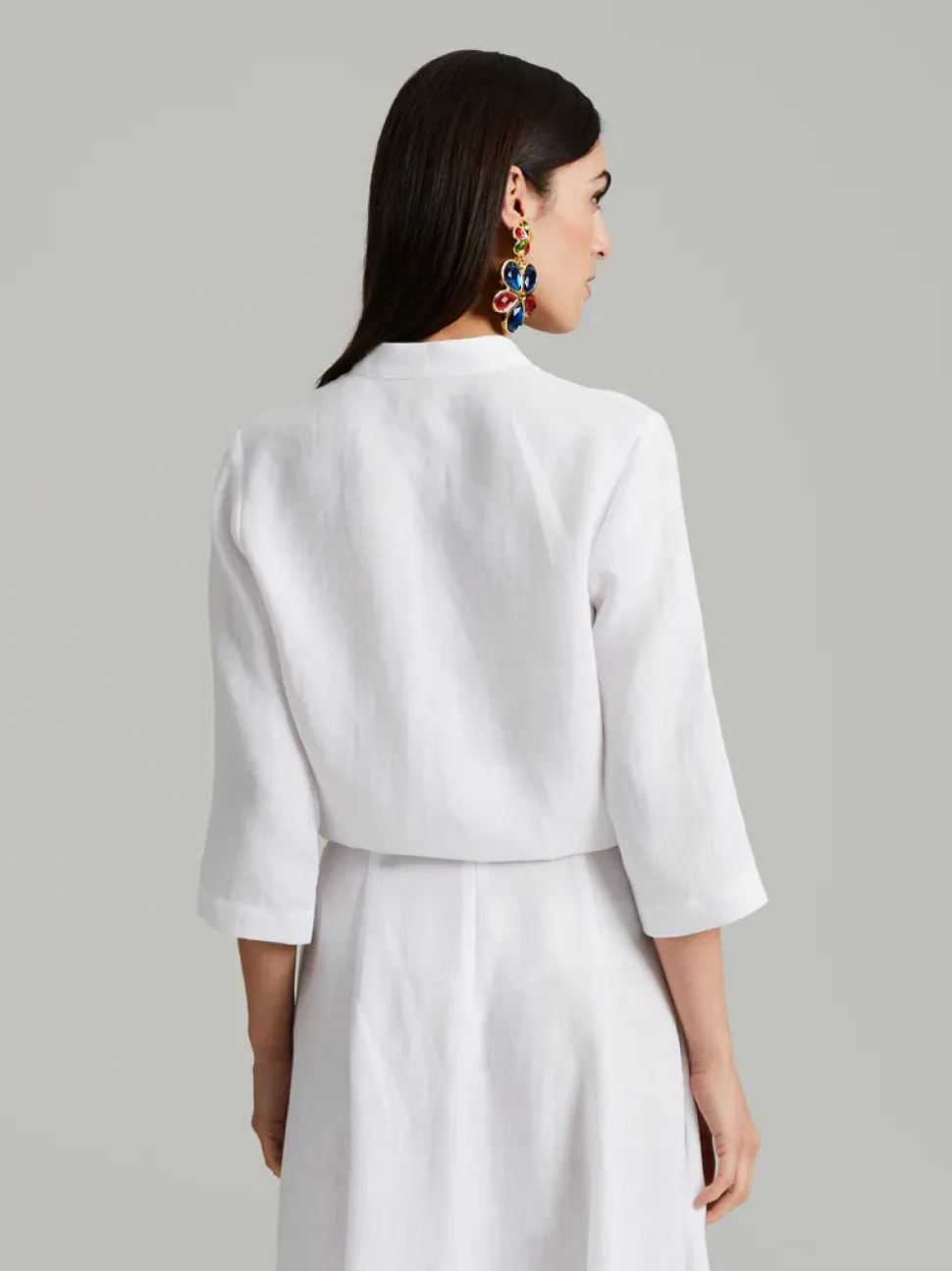 Vyötärölle solmittava pellavapaita italialaisesta pellavasta, jossa on rento istuvuus, vajaamittaiset hihat ja kaulukset.