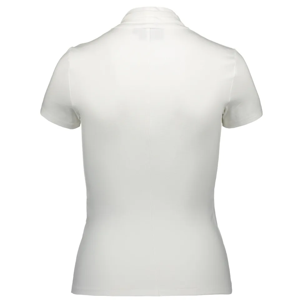 Andiatan lyhythihainen pusero joustavaa ja napakkaa trikoota. Kankaat limitetty edessä, avara pääntie. Koossa S pituus n.55 cm.