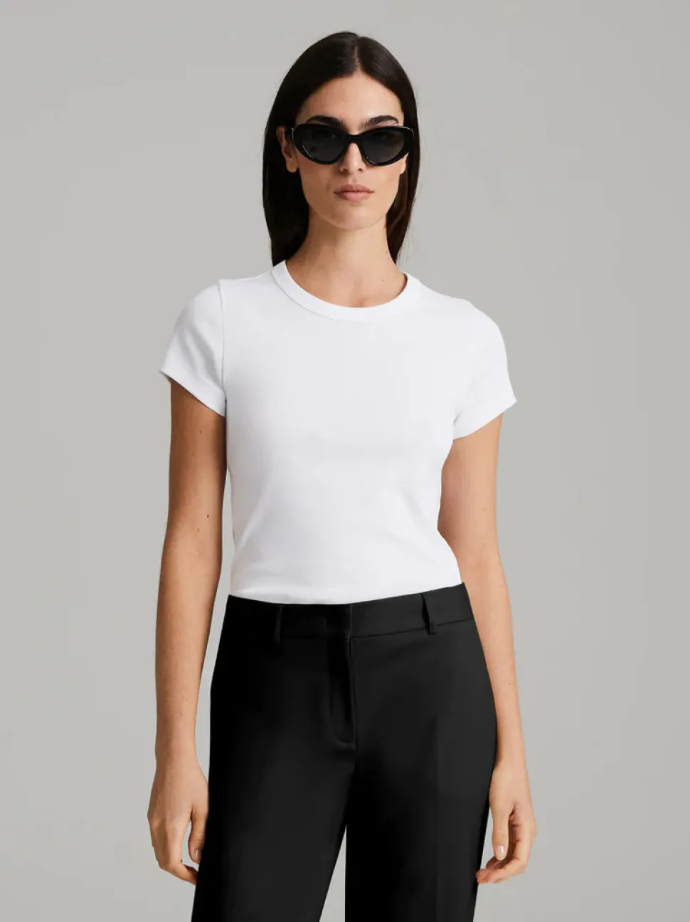 Istuva, klassinen t-paita pyöreällä pääntiellä ja t-paitahihoilla. Valmistettu mukavasta ja joustavasta puuvillakankaasta.