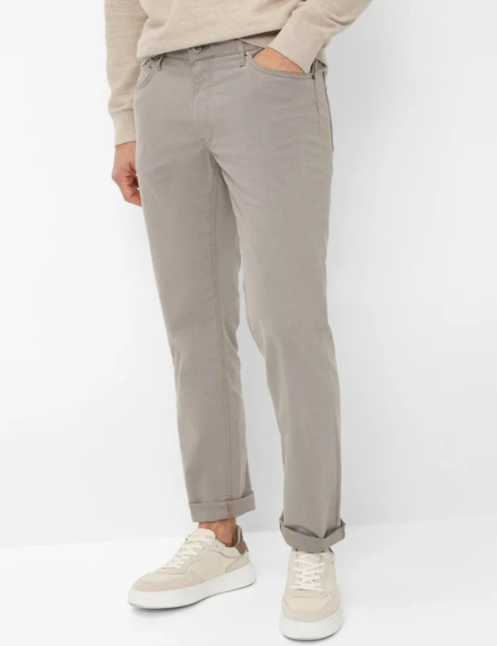 Modernit miesten housut, joissa on kapea istuvuus. Housuissa on keinonahkareunukset ja koristeelliset niitit. Triple Flex -kangas yhdistää korkealaatuiset kuidut superelastiseksi kankaaksi. Kestävä ja ihoystävällinen puuvillasekoitus tarjoaa myös täydellisen tunteen näiden viisitaskuhousujen kanssa.
