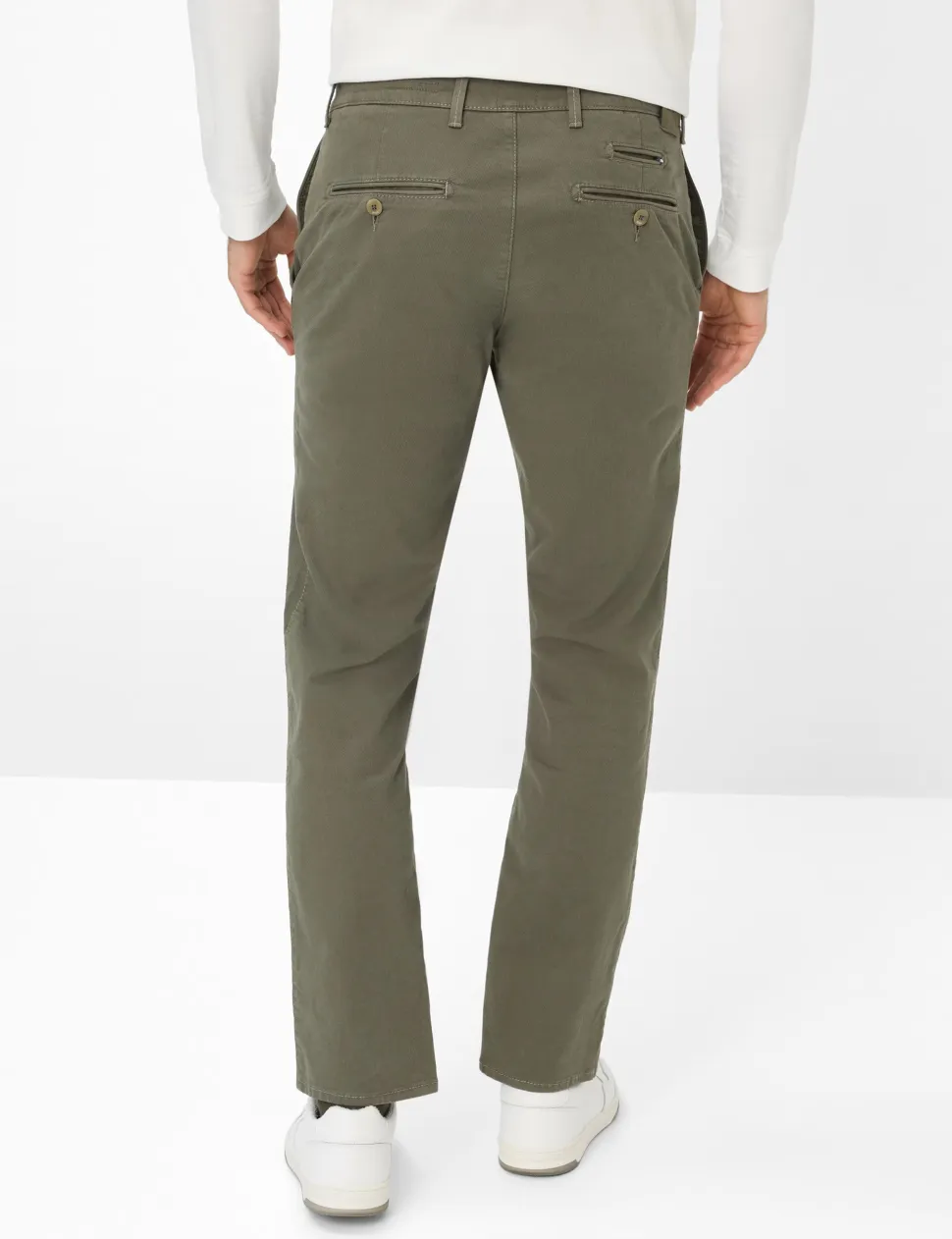 FABIO IN -tyyli on miesten avainvaate. Tyylikäs paidan kanssa tai moderni poolopaidan kanssa – nämä chinot sopivat sekä klassiseen että rennon tyyliin. Nämä modernin malliset miesten housut tarjoavat rennon ilmeen normaalilla vyötäröllä ja kapealla leikkauksella. Housujen monimutkainen taskumuotoilu antaa niille erityisen viehättävän ilmeen. Niissä on myös keinonahkareunus ja koristeelliset niitit. Rajoittamaton liike: Erittäin joustavat Hi-Flex-kuidut takaavat rajattoman liikkumisvapauden korkean joustavuutensa ansiosta – yksinomaan BRAXilta. Kestävä ja ihoystävällinen puuvillasekoite varmistaa myös näiden chinojen täydellisen istuvuuden.