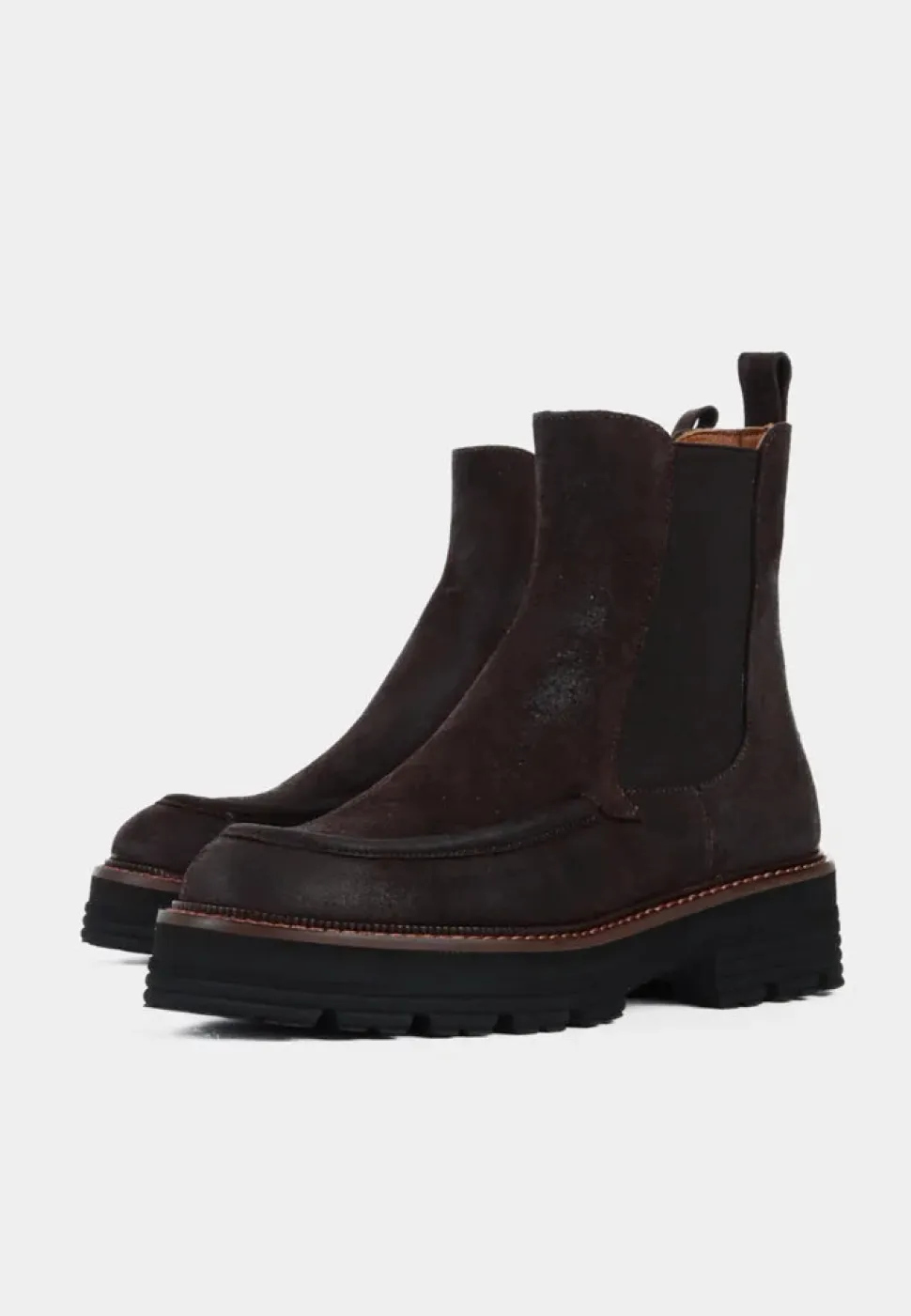 Bukela Riva Mocca – Chelsea-tyylinen nilkkuri tummanruskealla nahkapäällisellä. Pyöreä kärki, elastiset venykkeet sivuilla ja vetosilmukka helpottavat pukemista. Ulkopohja on kuvioitua kevyt EVA-materiaalia, joka vaimentaa iskut. Malli on kevyt mutta tukeva, siisti ja ajaton; sopii arkeen ja kaupunkikäyttöön. Valmistettu Italiassa, yhdistyy helposti farkkujen, mekkojen ja hameiden kanssa. Korkealaatuinen nahka ikääntyy kauniisti ja tarjoaa kestävyyttä.