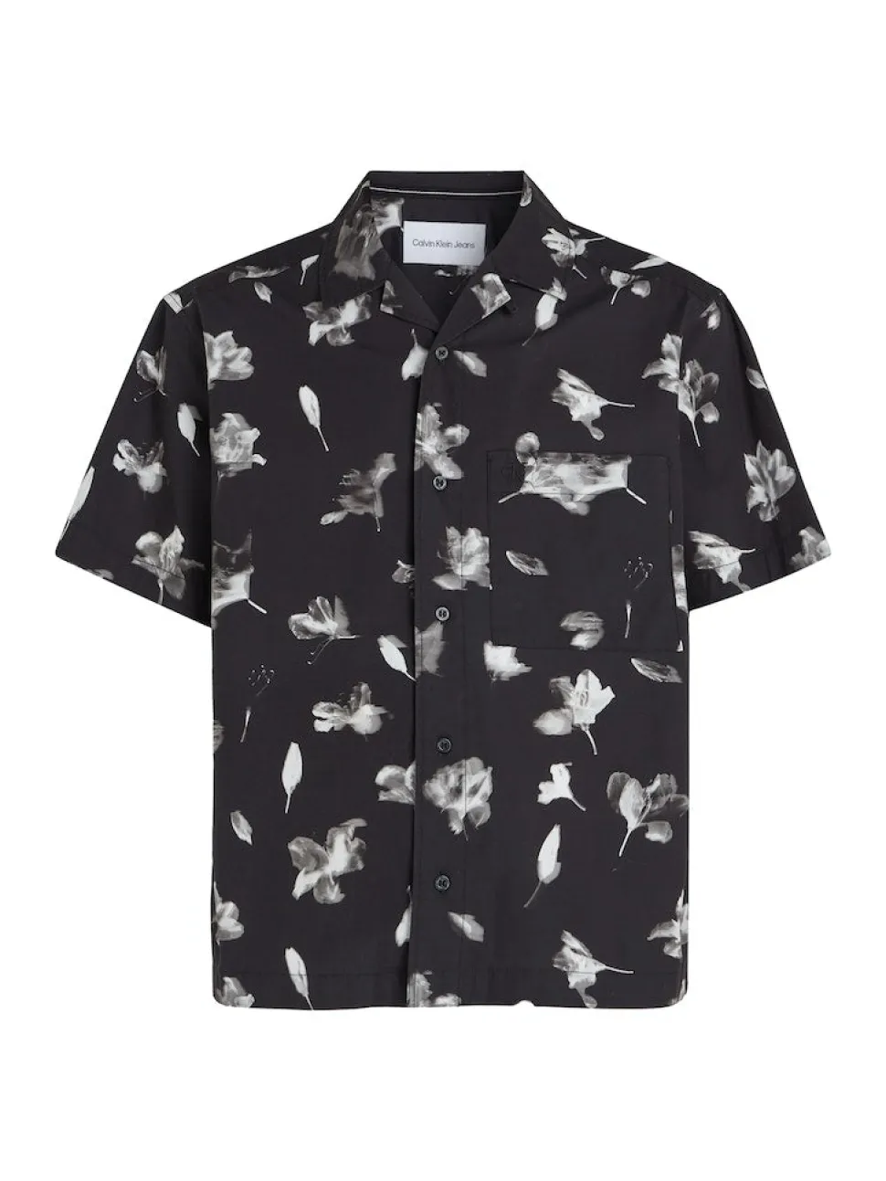 Calvin Klein Jeansin rento lyhythihainen kuviollinen kauluspaita. Nappikiinnitys ja rintatasku.