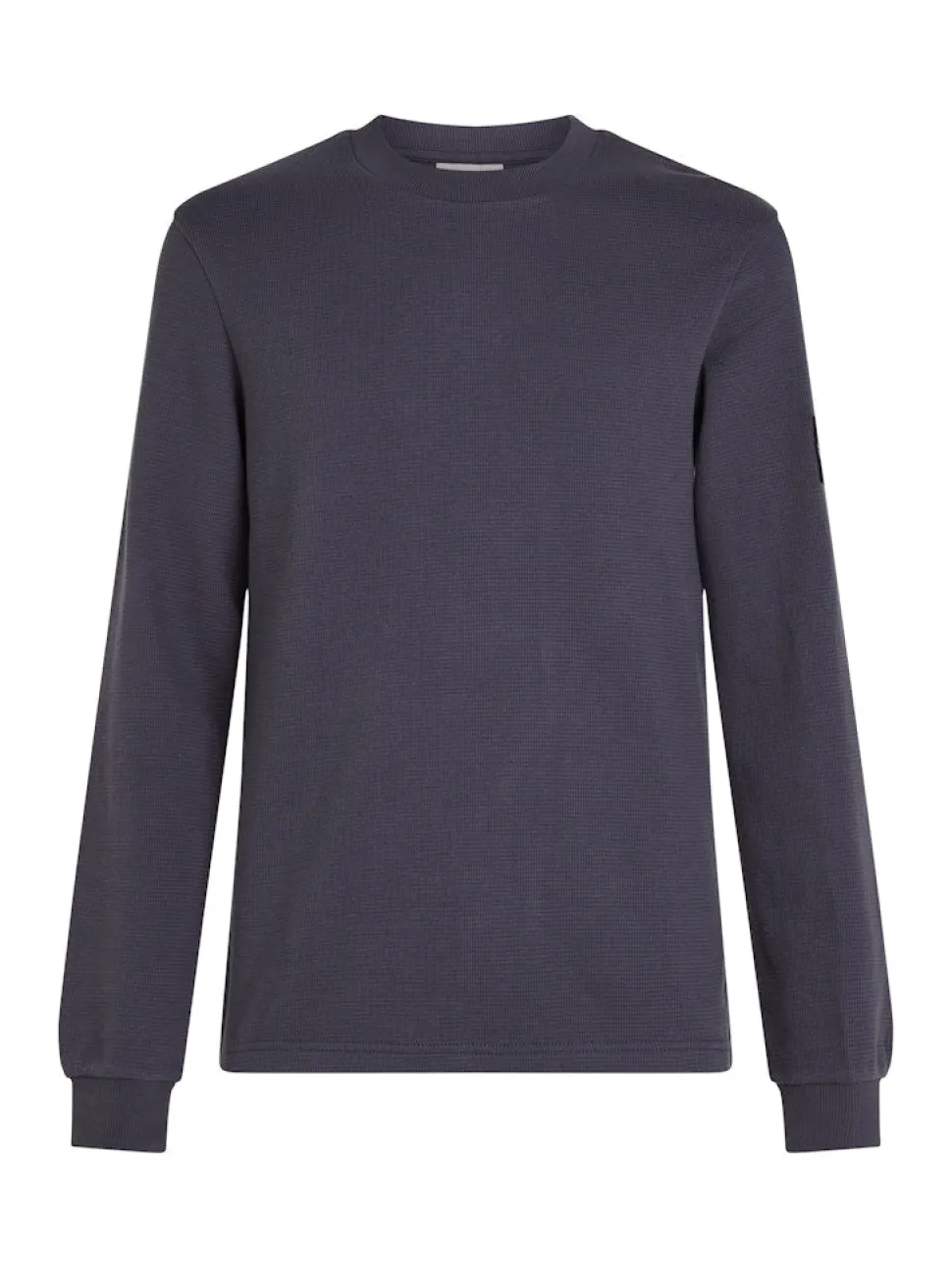Calvin Klein miesten paita. – Pehmeä kohokuvioitu neule – Slim fit istuvuus – Pyöreä pääntie – Pitkät hihat – Resorineulottu kaulus ja hihansuut – Calvin Kleinin monogrammimerkki hihassa