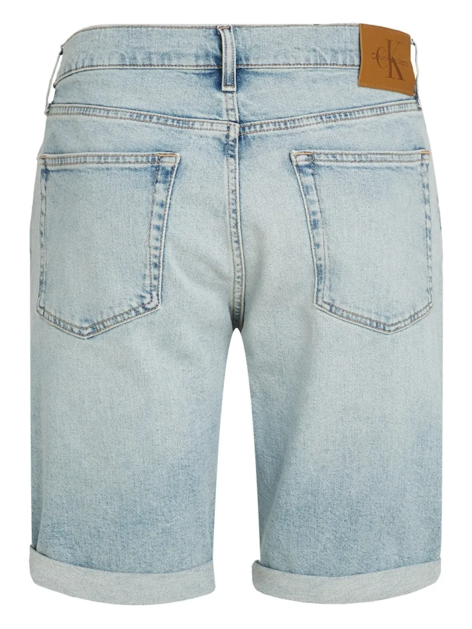 – Kaksi vetoketjullista taskua pakaroissa.”>Calvin Klein Jeans -malliston shortsit hieman joustavasta denimistä. Normaali vyötärömalli, jossa taskut edessä, takana, nappi ja vetoketju.