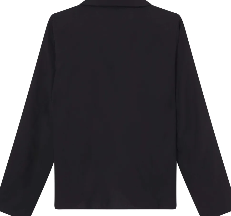 Pitkähihainen paita, jossa nappikiinnitys, V-pääntie ja kaulukset.