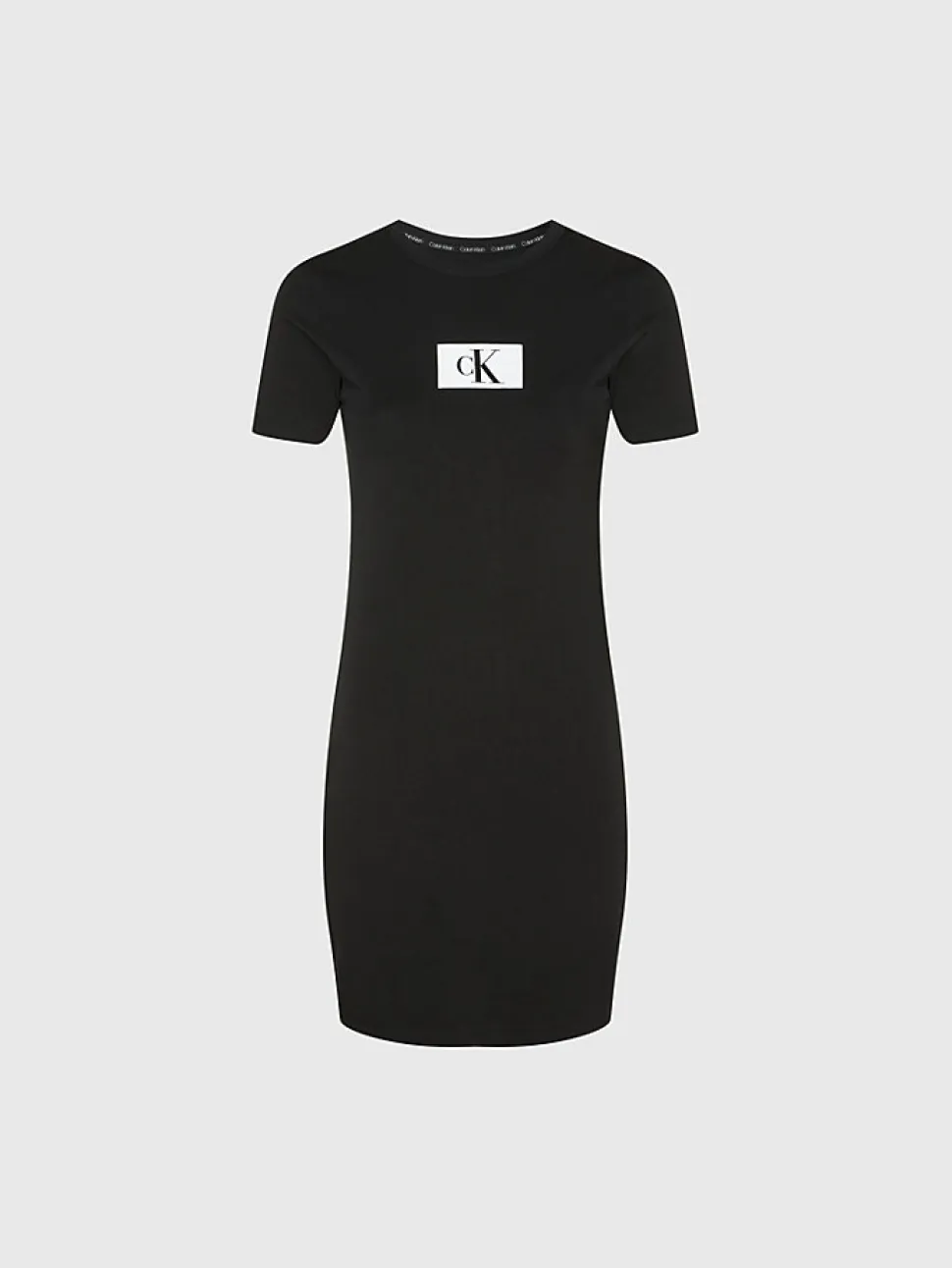 Naisten puuvillainen tyköistuva trikoomekko. Edessä Calvin Klein logoprintti.