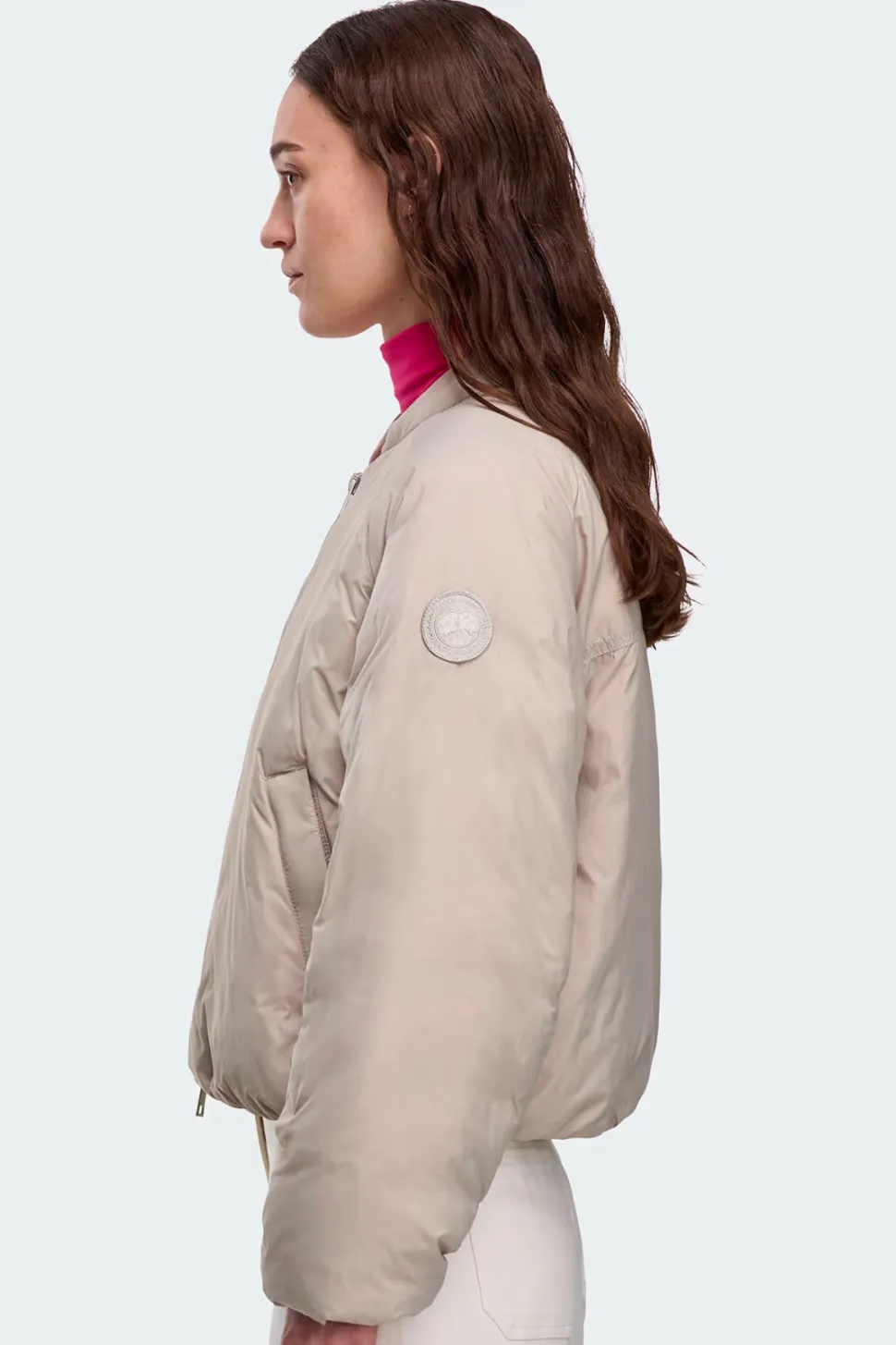 Elba Bomber on kevyt ja helposti pakattava takki, valmistettu pehmeästä ja ylellisen tuntuisesta Lumina-kankaasta, joka on ohut, kevyt ja hieman kiiltävä. Monikerroksinen toppaus antaa takille minimalistisen ja modernin ilmeen sekä erinomaisen lämpöeristyksen.