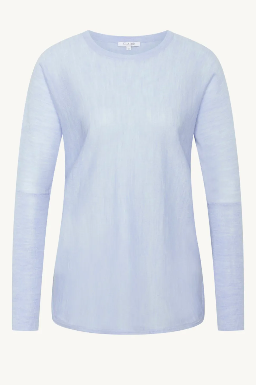 Pehmeä, kevyt neule, jossa resorihihat. Kauniisti kaareva helma.