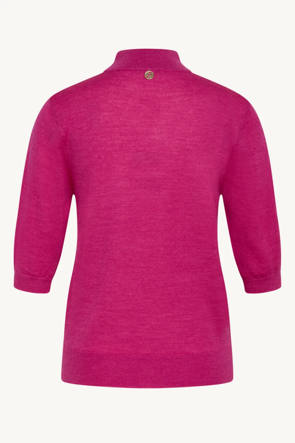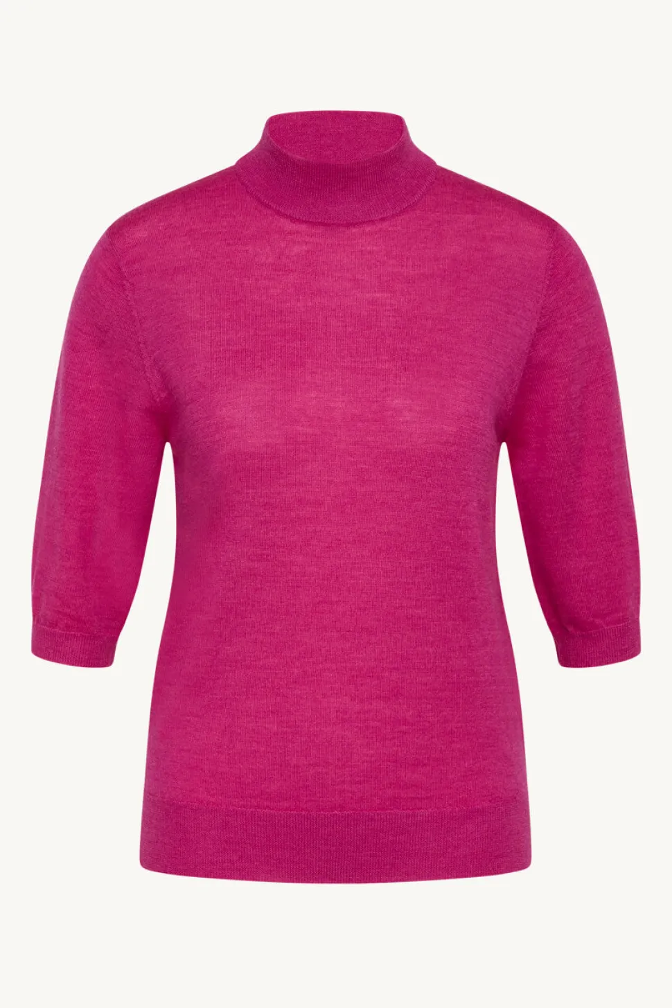 Clairen kaunis ja pehmeä neule lyhyemmillä hihoilla ja pystykauluksella, 100% merinovillaa. Viimeistelty kultaisella merkillä