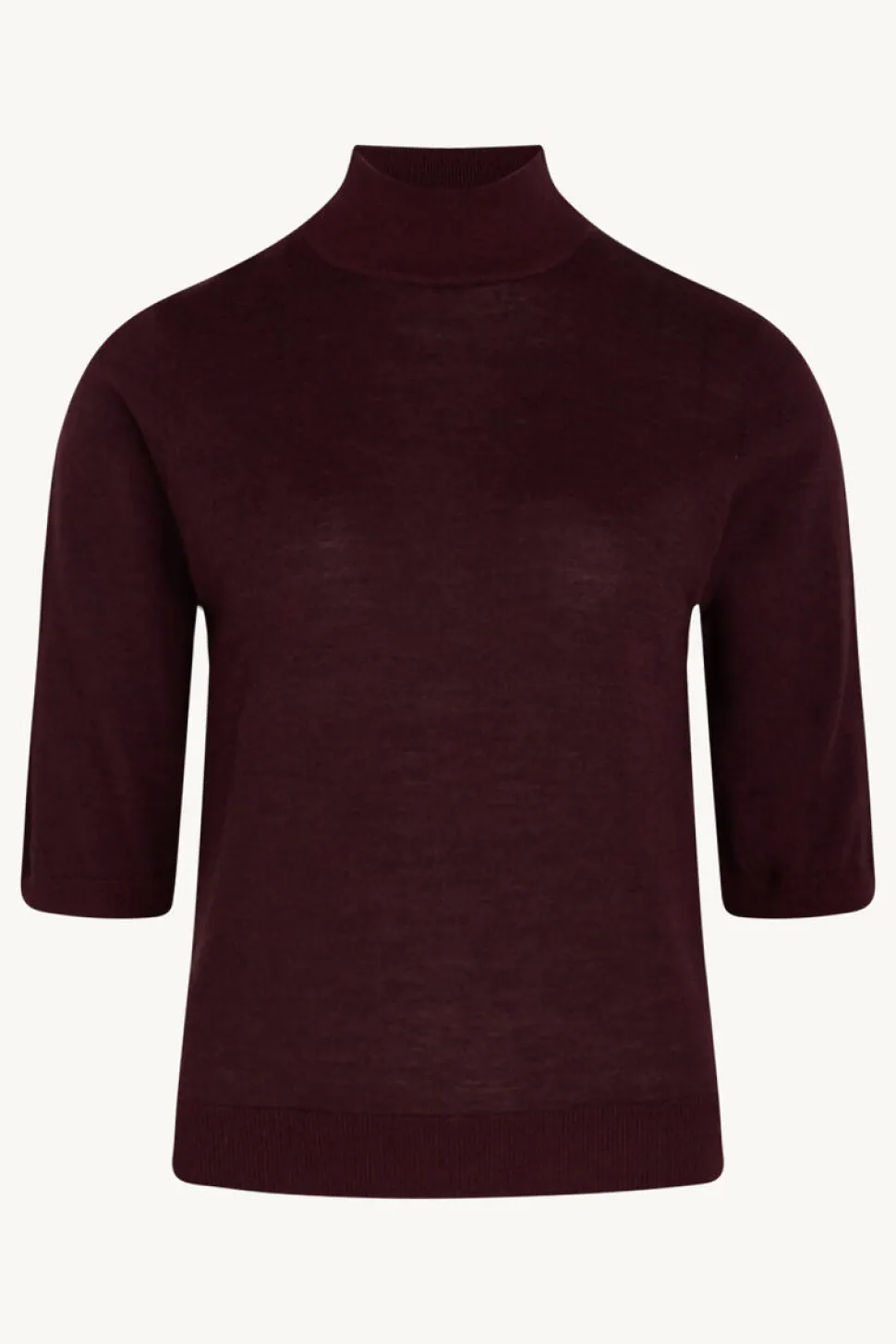 Clairen kaunis ja pehmeä neule lyhyemmillä hihoilla ja pystykauluksella, 100% merinovillaa. Viimeistelty kultaisella merkillä