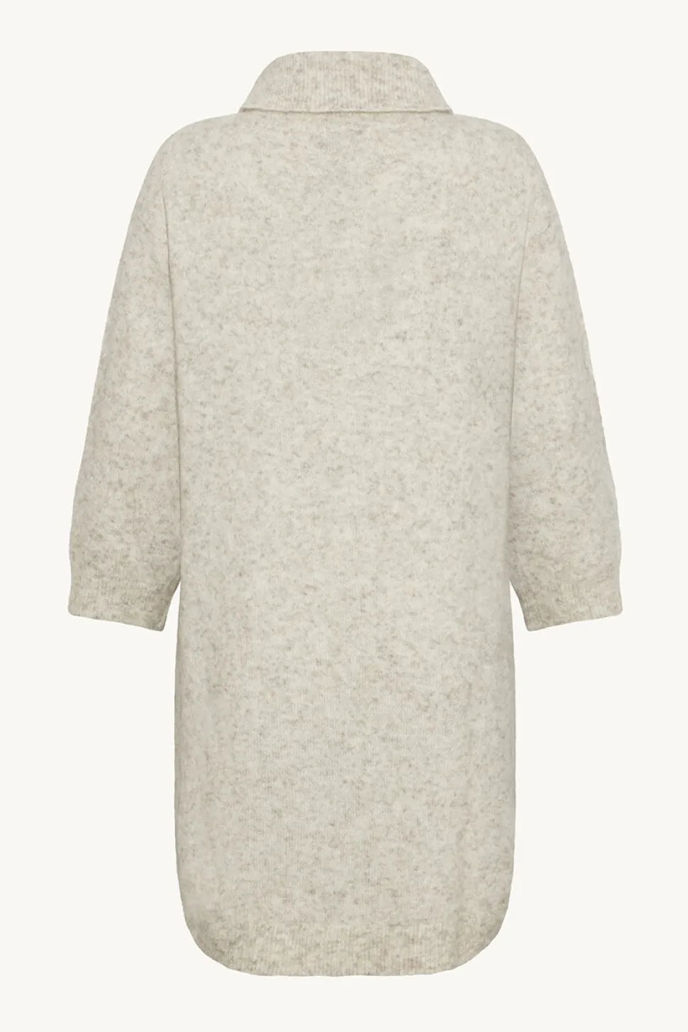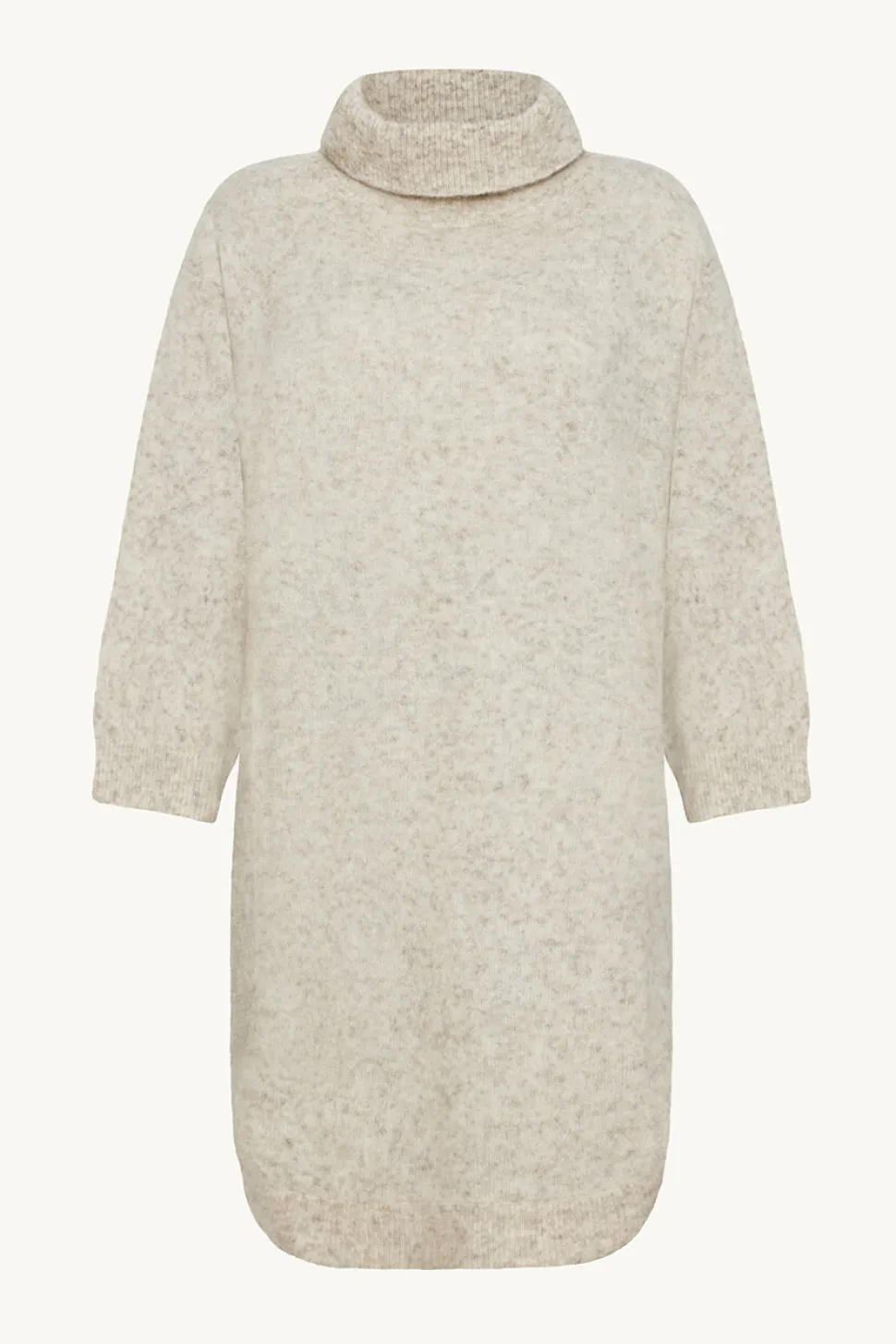 Pehmeä roll-neck neule. Puserossa on kaareva helma ja sivuhalkiot.