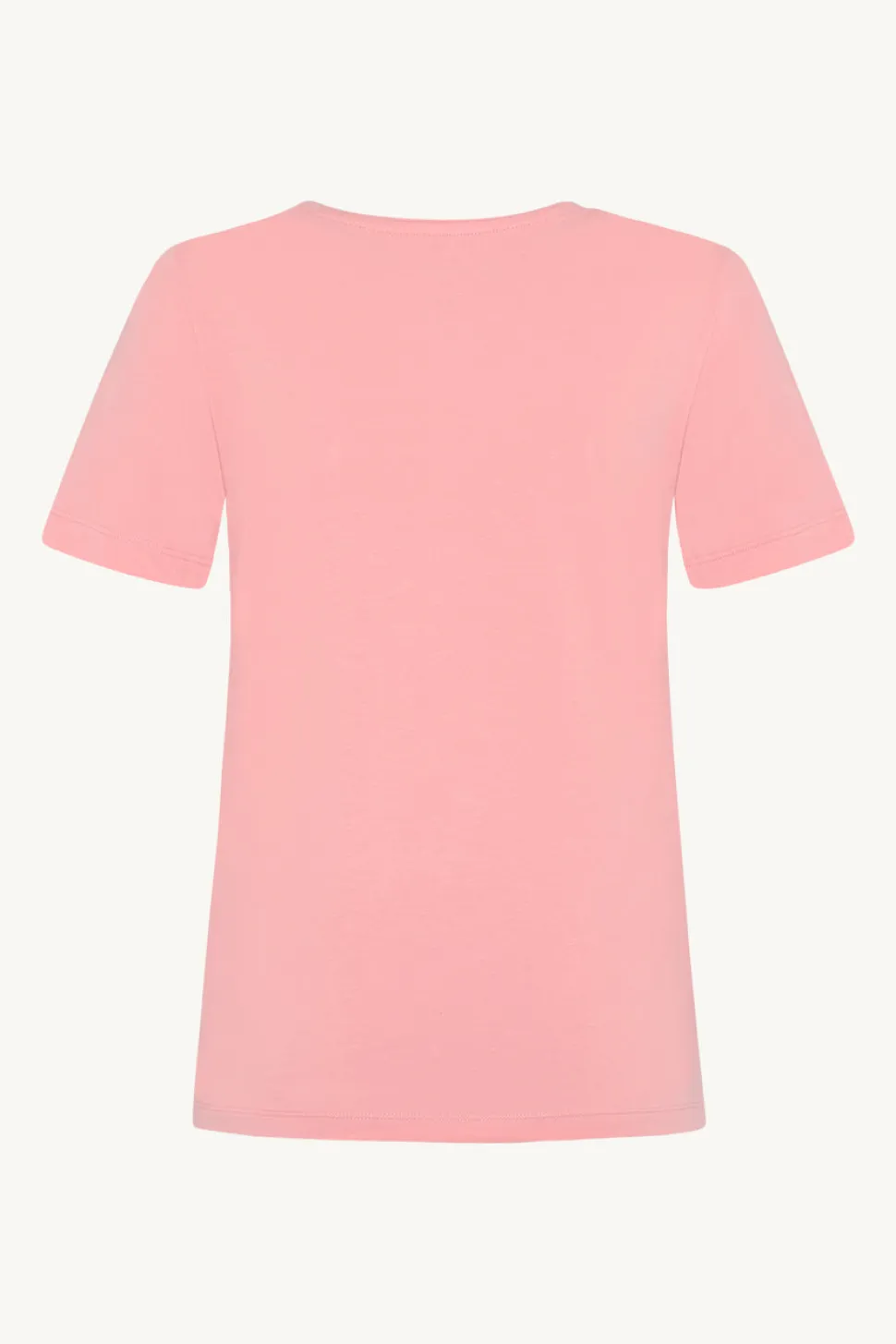 Naisten lyhythihainen t-paita pehmeää, joustavaa trikoota, rinnassa strasseilla tehty Claire-logo