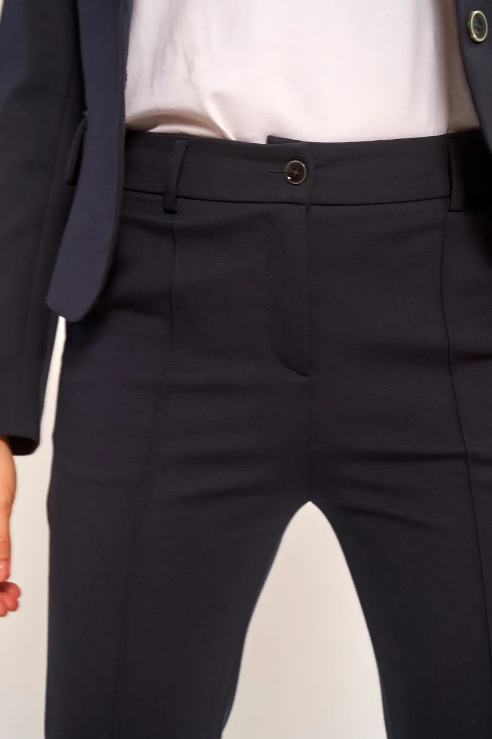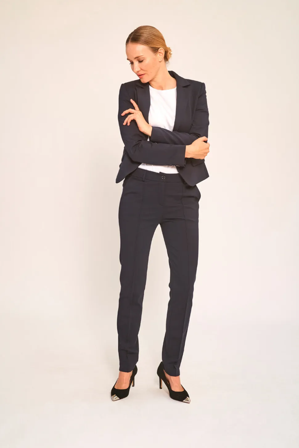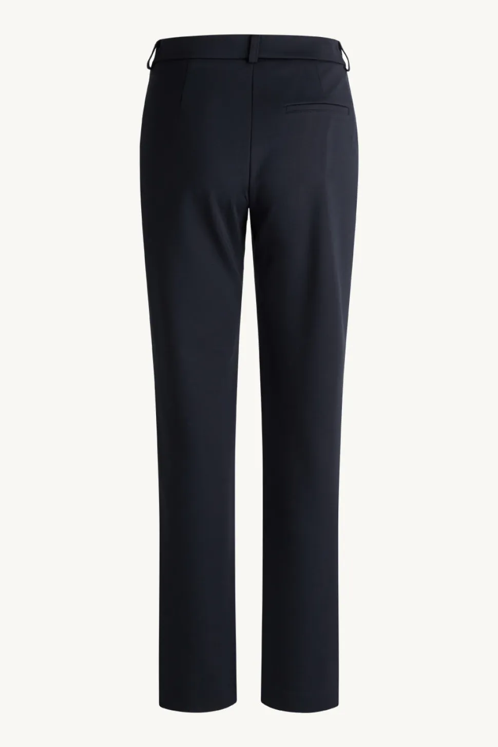 Klassiset housut, joissa suorat lahkeet ja tasku edessä. Lahkeensuissa sivuilla pienet halkiot. Valmistettu joustavasta kankaasta.