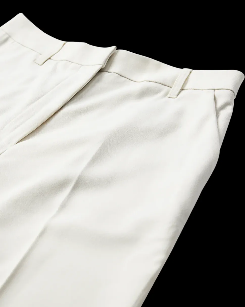 Tailor-housut ovat klassiset, korkeavyötäröiset housut ikonista Tailor-materiaalia. Edessä on piilotettu hakaskiinnitys ja vetoketju, ja sivutaskut tuovat käytännöllisyyttä. Suorat lahkeet ja tarkasti viimeistellyt laskokset korostavat housujen ajattoman tyylikästä ilmettä.