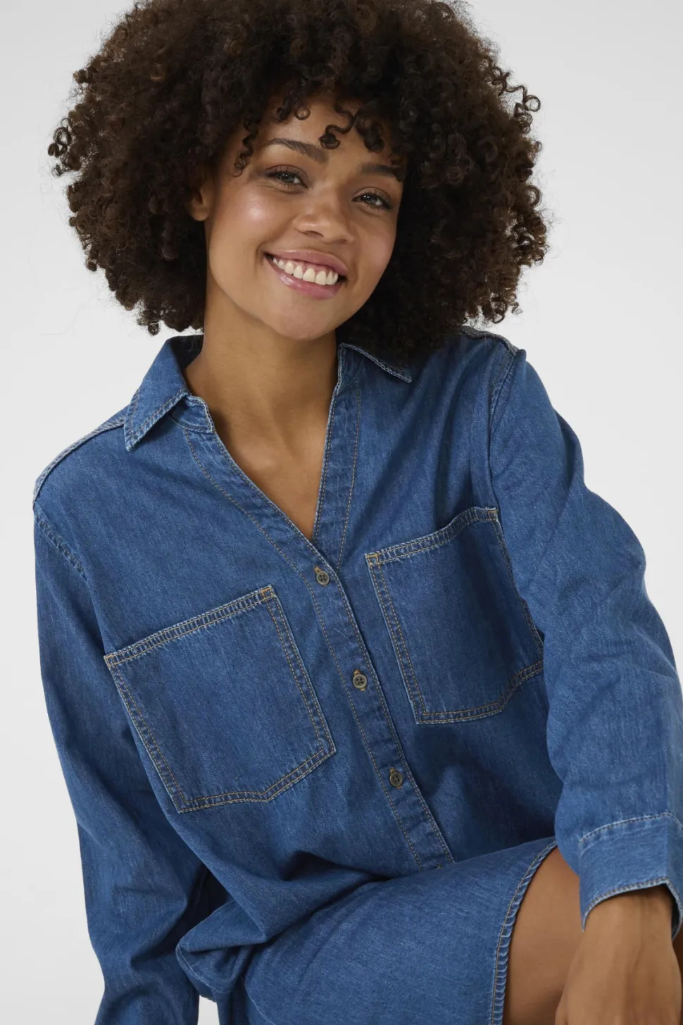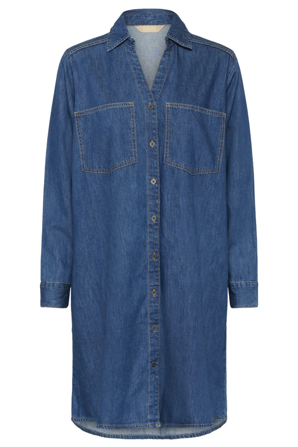 Culture CUmola Dress on tyylikäs ja rento farkkumekko, joka yhdistää klassisen farkkuviskoosin moderniin muotoiluun. Mekko on suoralinjainen ja istuu kauniisti. Sen pitkät hihat, perinteinen kaulus ja napitettava edusta tuovat klassista ilmettä, kun taas kaksi isoa rintataskua lisäävät käytännöllisyyttä ja trendikästä ilmettä.