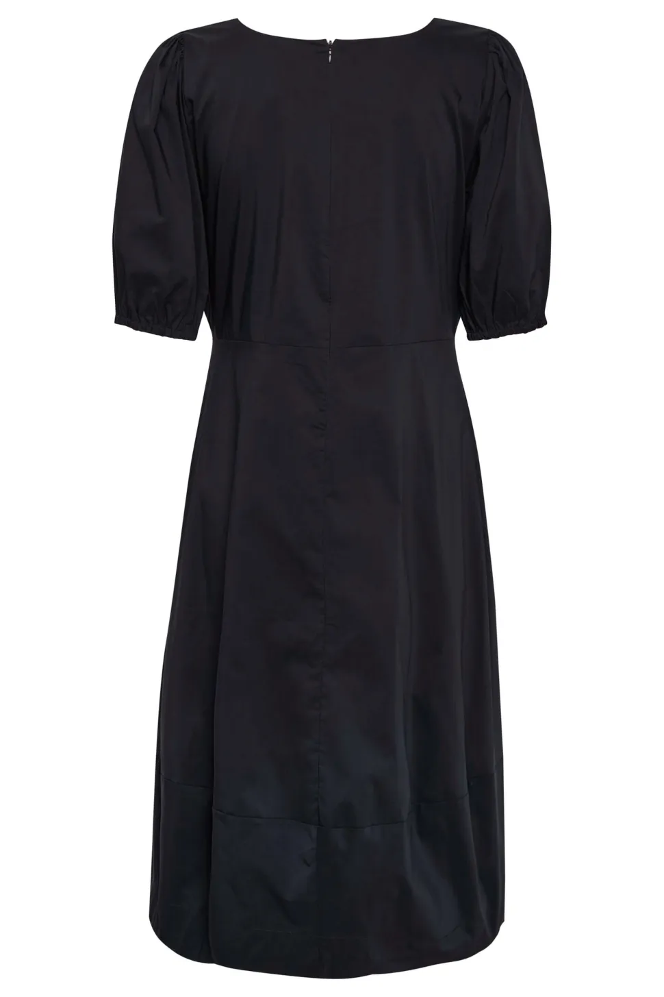 Culturen kauniissa mekossa on miellyttävä joustava materiaali. .Mekossa lyhyet puhvihihat, vetoketjukiinnitys selässä sekä taskut. Hieman levenevä helma joka laskeutuu kauniisti. Kaunis v- pääntie. Sopii sekä arkisempaan kuin juhlavampaankin käyttöön.