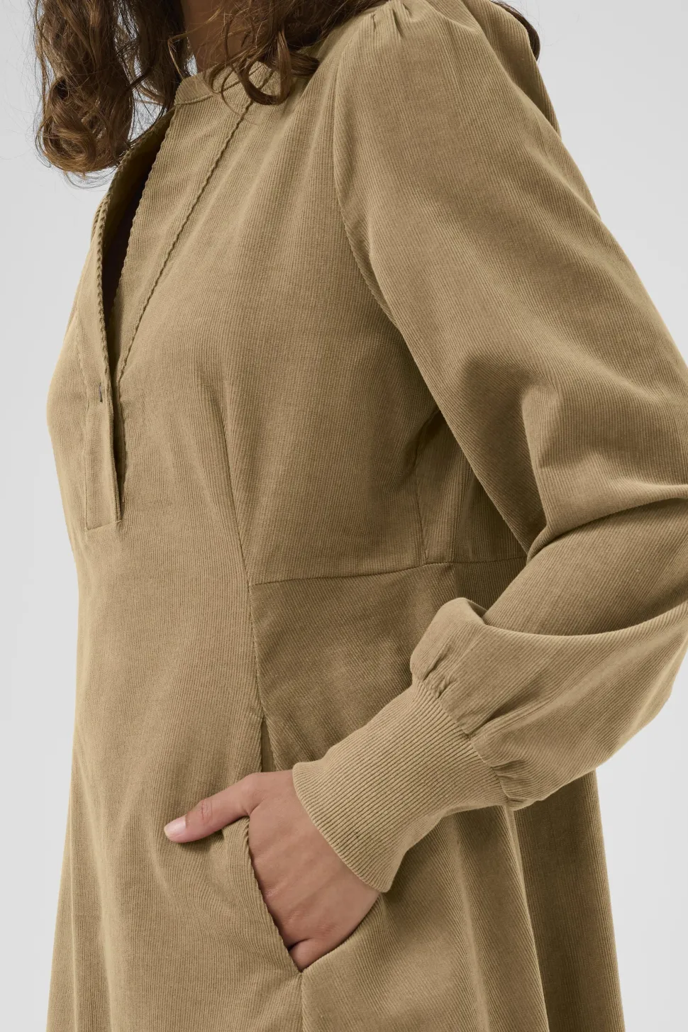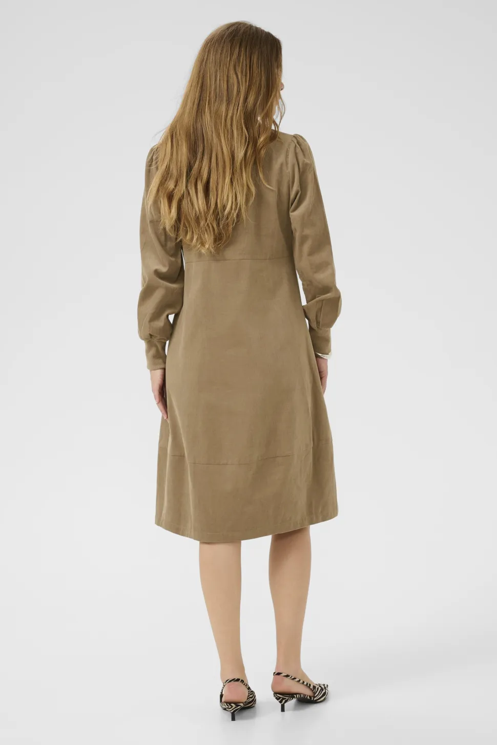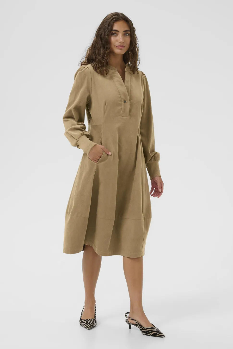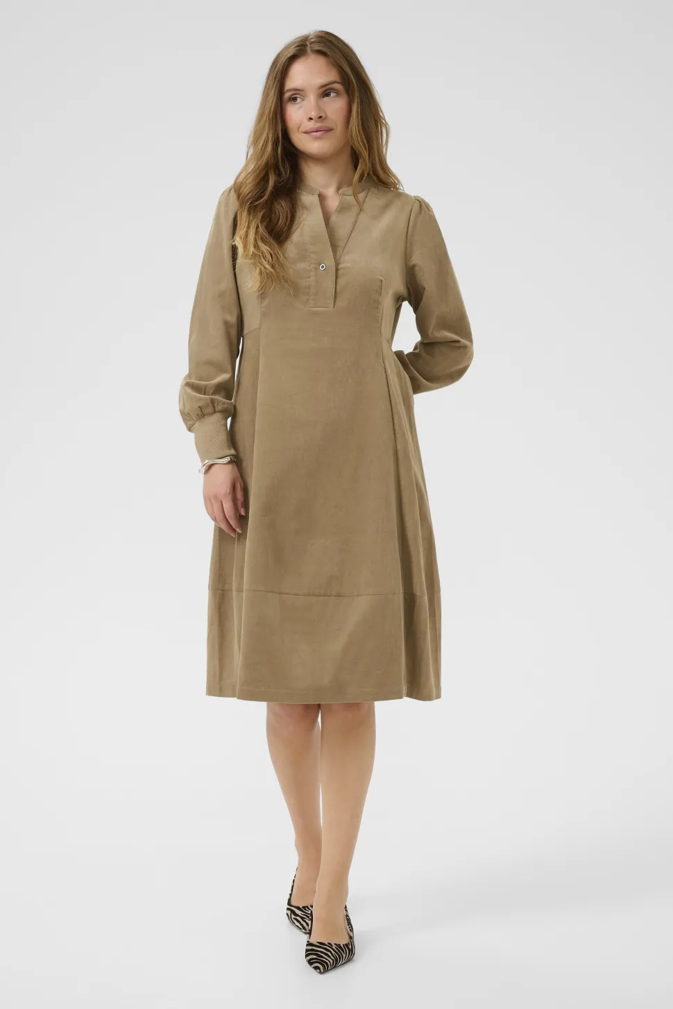 Tämä A-linjainen midimekko tarjoaa rennon istuvuuden ja modernin ilmeen hillityllä pyöreällä V-pääntiellä ja pitkillä hihoilla. Huolellisesti sijoitetut hihansuut ja puoliväliin ulottuva pituus takaavat mukavuuden ja monipuolisuuden niin arkeen kuin toimistollekin.