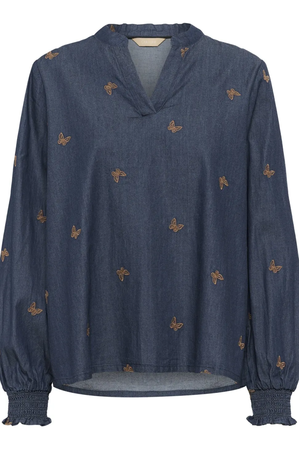 Culture Filipa Michelle Blouse on tyylikäs ja klassinen naisten pitkähihainen pusero, jossa yhdistyvät ajaton muotoilu ja laadukas denim-materiaali. Hillitty V-pääntie ja pitkät hihat antavat puserolle mukavan ja monikäyttöisen siluetin, joka sopii niin arkeen kuin hieman juhlavampaankin asuun. Lisäksi huolitellut kirjailu- ja borduuridetaljit tuovat puseroon hienovaraisesti persoonallisuutta ja lisäävät visuaalista kiinnostavuutta. Materiaali on hengittävää ja kestäväksi kudottua puuvilladenimiä, joka tuntuu miellyttävältä päällä ja sopii helposti yhteen farkkujen, hameiden tai bleiserin kanssa.