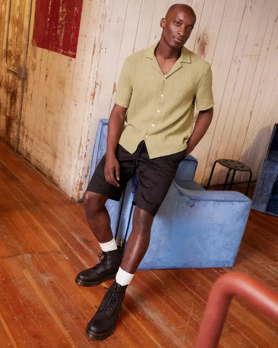 Nahka on kevyesti öljyttyä ja kestävää, ja se vain paranee vanhetessaan. Tunnettu ilmatyynypohjamme muodostaa maihareiden perustan ja ne on viimeistelty tunnusomaisilla keltaisilla pohjatikkauksilla sekä kelta-mustalla kantalenkillä.