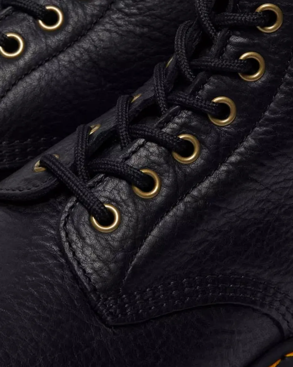 Kengät jotka ovat tehty käytettäväksi vuodesta toiseen. Tässä Grizzly-nahasta valmistetussa 1460 WL -maiharissa on luonnollinen pinta, joka vain paranee käytön myötä. Lujatekoisessa ja jykevässä mallissa on antiikkikullanväriset metalliosat, ja se on viimeistelty keltaisella pohjatikkauksella ja AirWair-kantalenkillä.