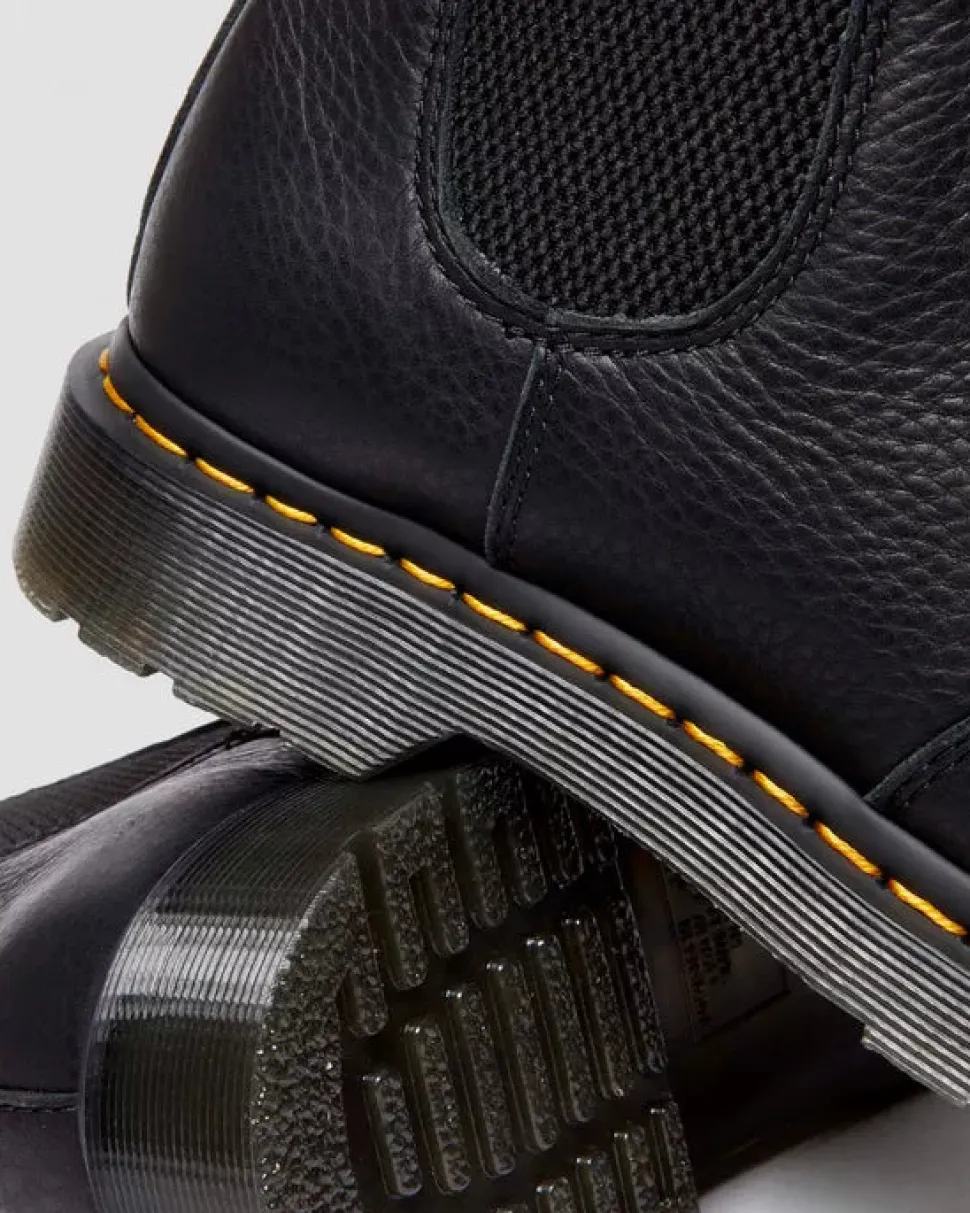 Ikoninen 2976 Chelsea-nilkkuri on uudistettu pehmeästä ensiluokkaisesta Ambassador-nahasta, jossa on kuvioitu ja öljytty pinta. Notkea nahka muotoutuu jalkaasi heti ensimmäisestä hetkestä lähtien, joten Dr. Martens -jalkineiden käyttö on helpompaa kuin koskaan. Pohja on kiinnitetty keltaisella DM’s-pohjatikkauksella ja siinä on tunnusomainen uritus. Viimeistelty keltamustalla kantalenkillä.