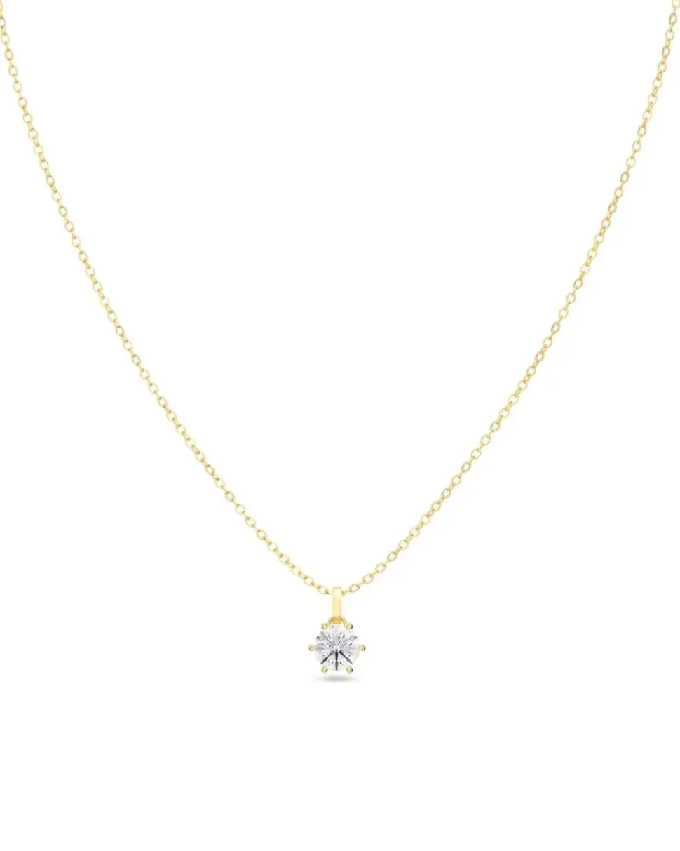 Klassisen Crown-sarjan kaulakorun kirkas kivi on istutettu elegantisti kuudella kärjellä. Crown-kaulakorusta tulee suosikkisi viikon jokaiseen päivään, mielellään kerrostettuna useiden kaulakorujen ja ketjujen kanssa. Istutettu kivi on kiinnitetty ankkuriketjuun, jossa on tässä kiiltävä 14 karaatin kultaus. Crown-sarja on erittäin arvostettu lahja.