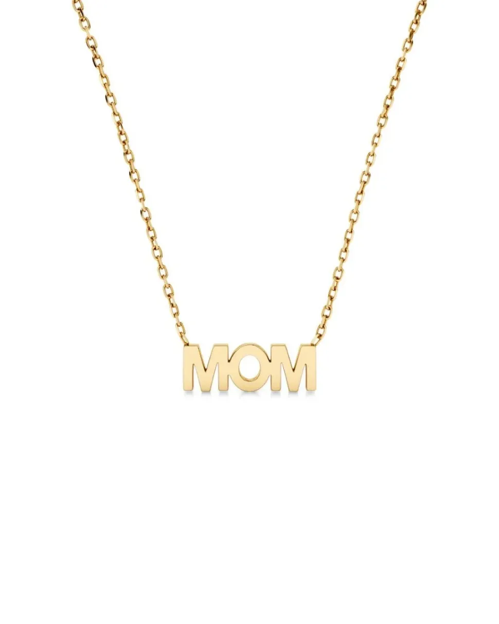 MOM yhdistää chunky-trendin ja suositun kerrostamistyylin ja antaa siten äidille mahdollisuuden ilmaista itseään hauskalla tavalla. Esimerkiksi tässä hieman sirommassa 14 karaatin kullalla kullatussa kaulakorussa on teksti MOM ja fasettihiottu ankkuriketju. Viehättävä ja cool yhtä aikaa ja sopii yhteen muiden suosikkikaulakorujen kanssa.