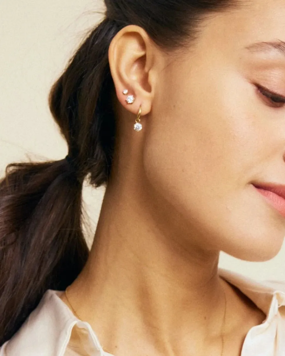 Kullatut nappikorvakorut: pienikokoinen 3 mm kuutiollinen zirkoniakivi kiiltävässä ruostumattomassa teräksessä – tyylikäs ja minimalistinen valinta.