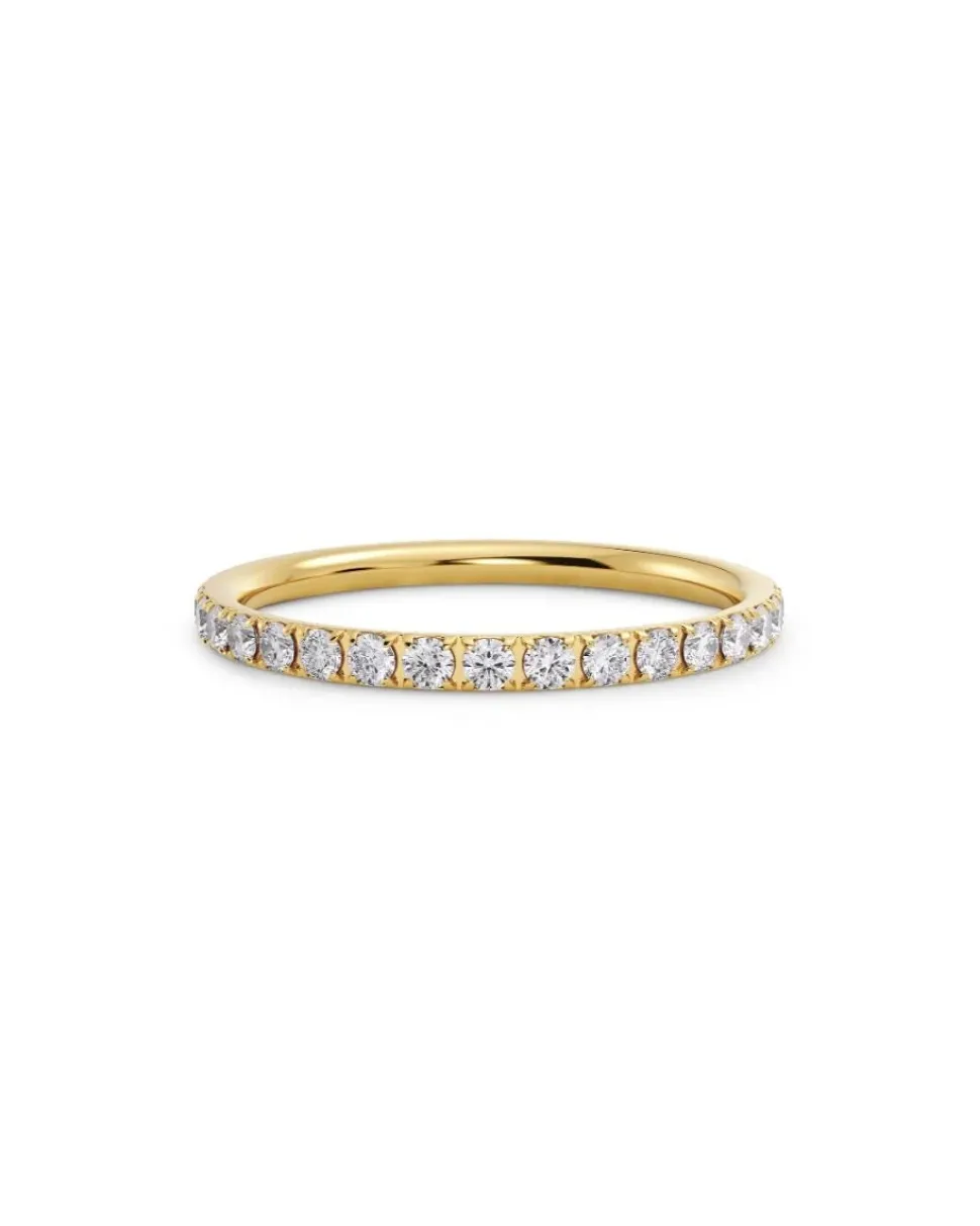 Edblad Glow Ring Mini Gold on elegantti ja minimalistinen sormus, jossa kiiltävä 14 k kultaus yhdistyy ruostumattomaan teräkseen ja koko kehän ympärille aseteltuihin kirkkaisiin kuutiollisiin zirkonioihin. Leveys on noin 1 mm ja korkeus 1,5 mm. Sormus on nikkeliturvallinen, vedenkestävä ja täydellinen yksinään käytettäväksi tai muiden sormusten kanssa puettavaksi.