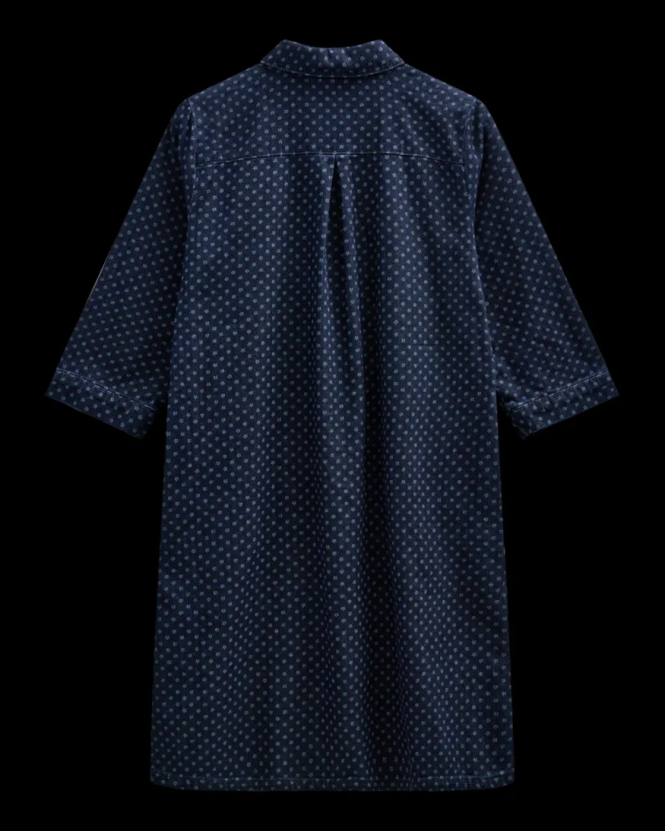 Tämä Freequent Rinna Dress on monipuolinen, tummansininen mekko, jossa yhdistyvät klassinen denim-vaikutelma ja moderni istuvuus. Mekossa on selkeä siluetti, kaunis kaulus sekä napitettava etuosa, jotka antavat ajattoman ilmeen, mutta samalla tekevät mekosta helpon pukea päälle sekä riisua. Selkeä leikkaus ja laskokset takana luovat pehmeän ja kauniisti laskeutuvan helman.