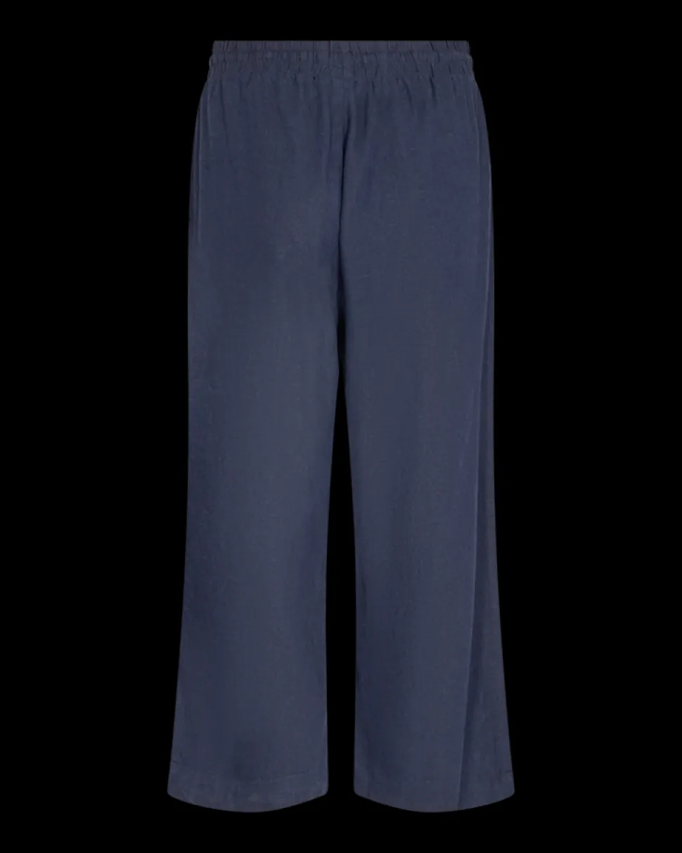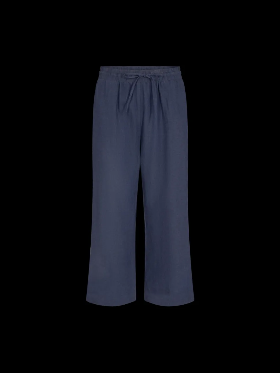 Freequent Naisten housut LA PANT 7/8 LINEN Tummansininen