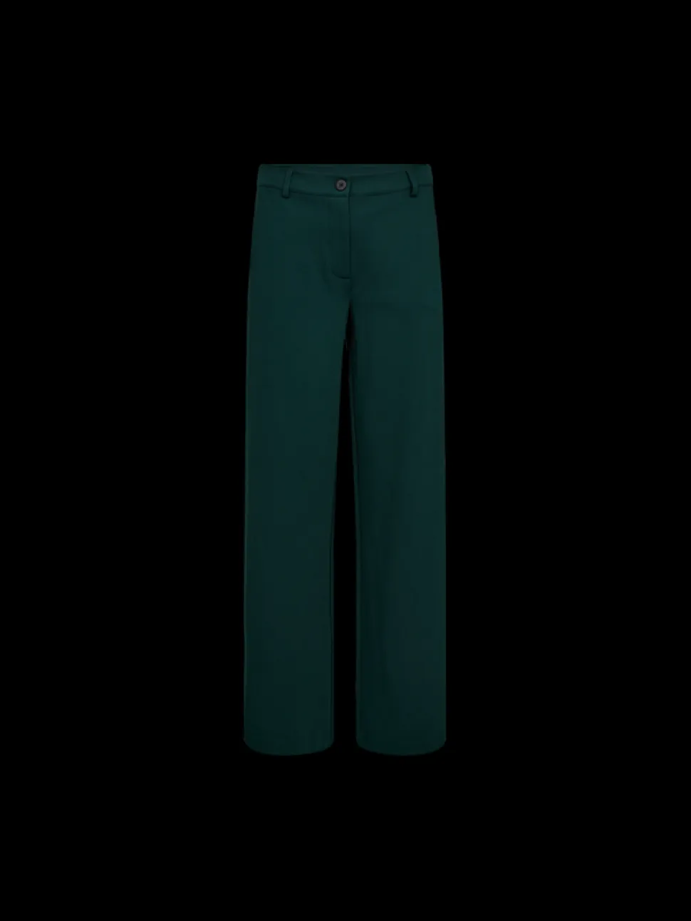 Naisten leveälahkeiset jerseyhousut. Housuissa on kiinnityksenä vetoketju ja nappi .