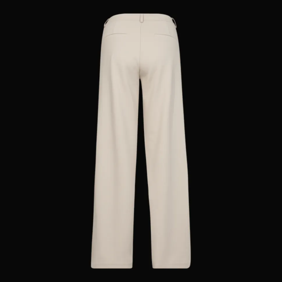 Naisten leveälahkeiset jerseyhousut. Housuissa on kiinnityksenä vetoketju ja nappi .