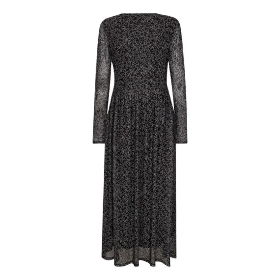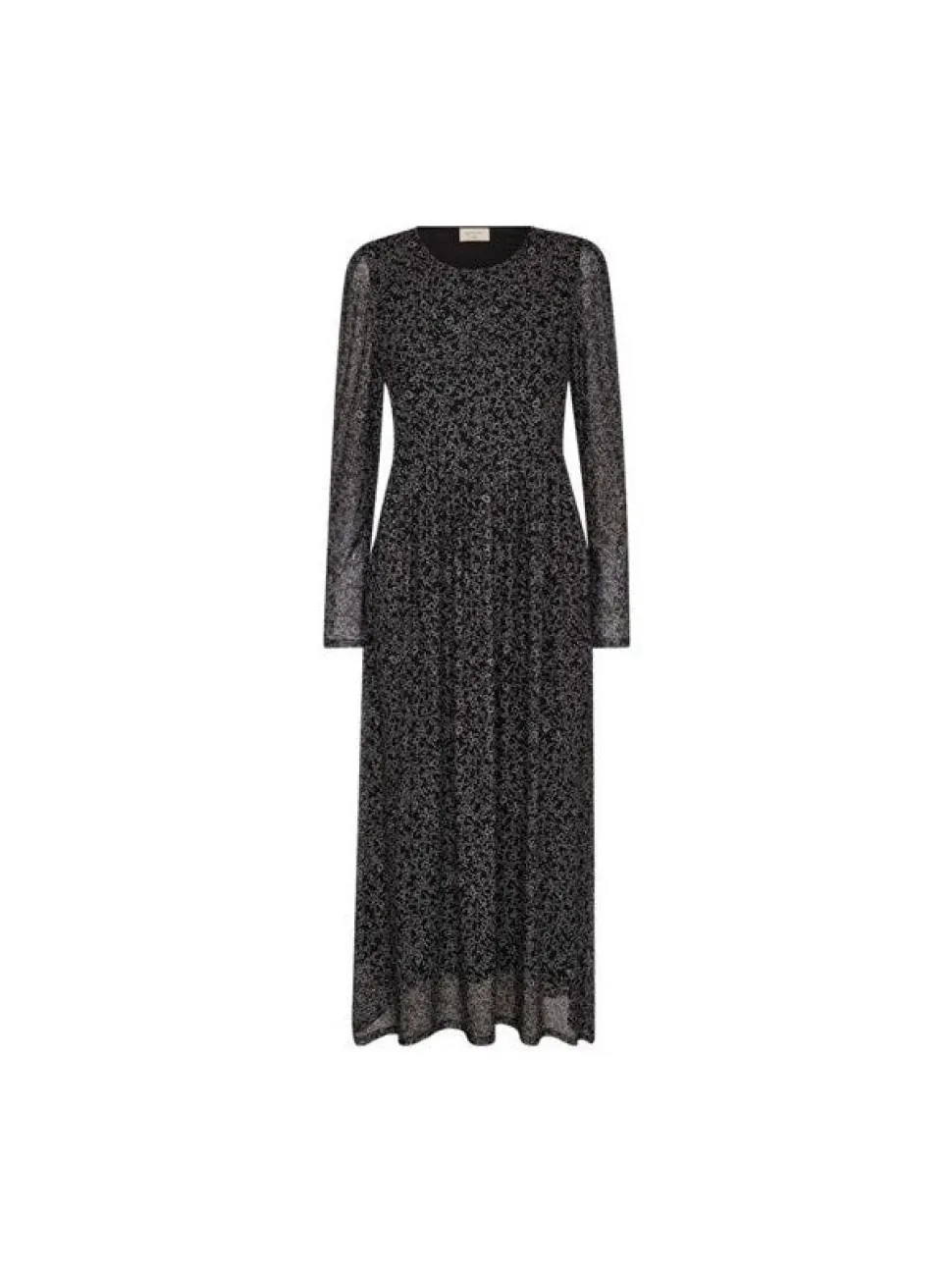 Freequentin kaunis kukkakuosinen maximekko, jossa on pitkät hihat, vuori miehustassa ja helmassa, mesh kangas ja hieman kellotettu helma.