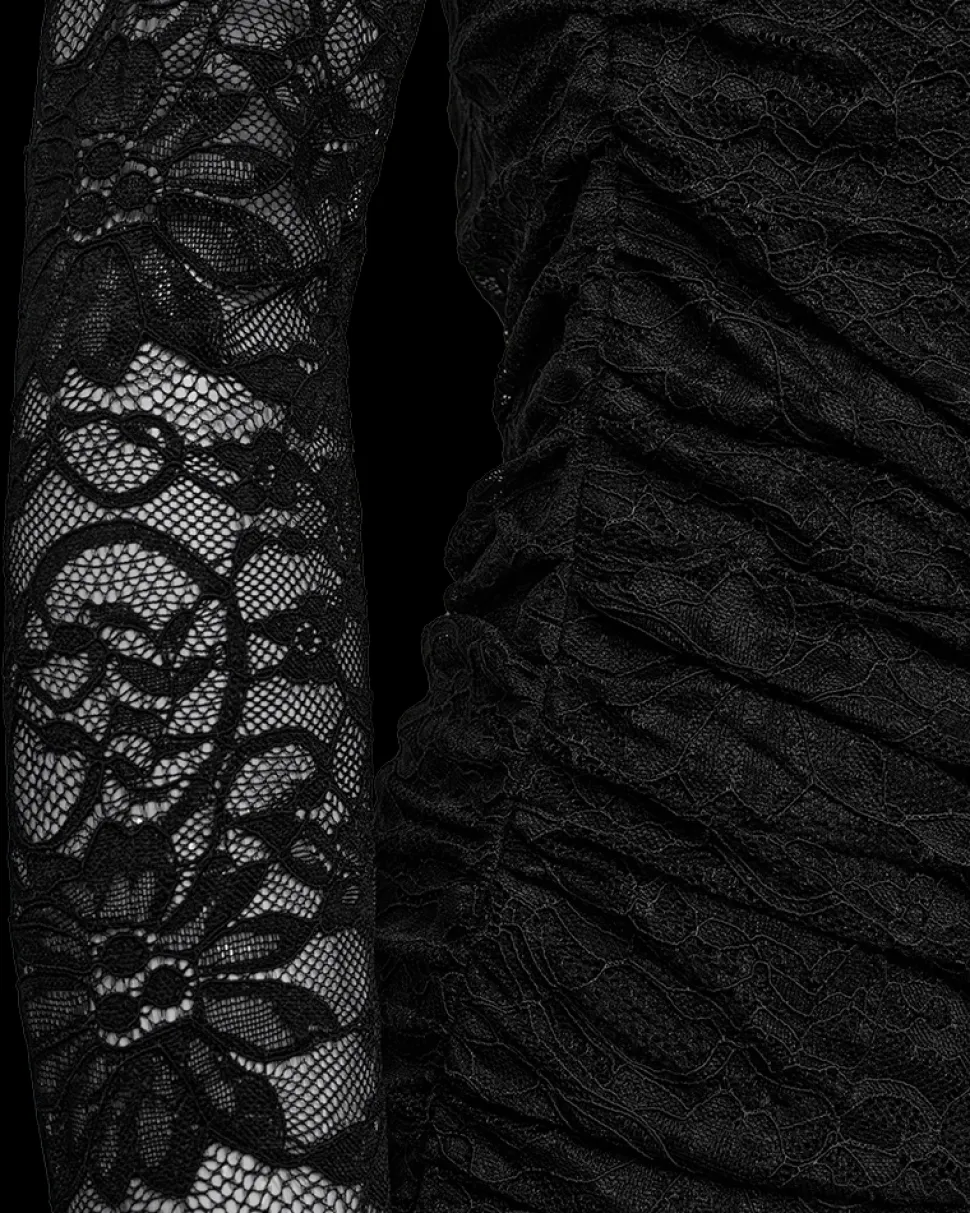 Freequent-merkkinen mekko kauniista pitsistä, jossa on kukkakuvio ja koko vartalon peittävä vuori. Lisäksi mekossa on kapea istuvuus, pitkät hihat, elegantti venepääntie sekä rypytettyjä yksityiskohtia sivulla.