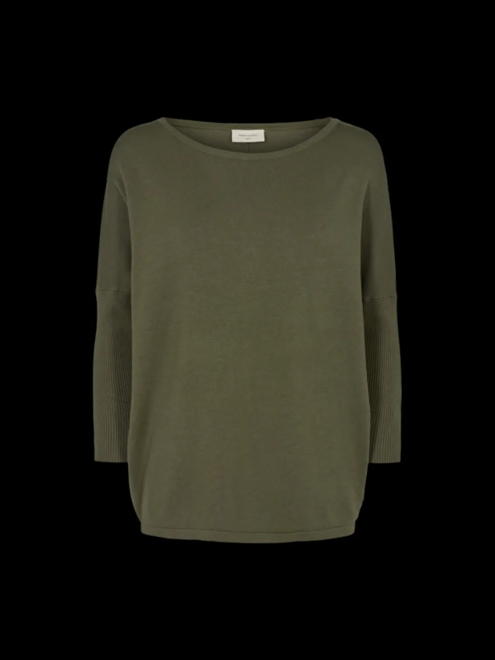 Freequentin yksivärinen neulepusero vajaamittaisilla ribneuloshihoilla. O-pääntie, malliltaan kapenee helmaan. Koossa S pituus n.65 cm.