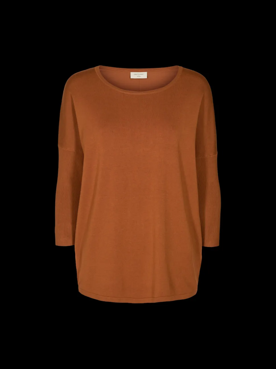 Freequentin yksivärinen neulepusero vajaamittaisilla ribneuloshihoilla. O-pääntie, malliltaan kapenee helmaan. Koossa S pituus n.65 cm.