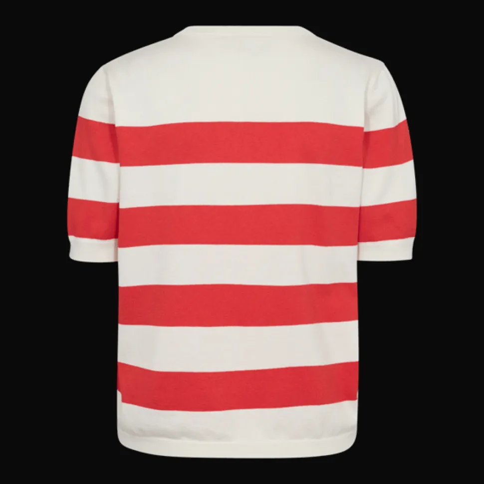 Freequent-neulepusero pehmeää, ohutta materiaalia, jossa on leveä raidallinen kuvio. Neulepuserossa on yksinkertainen siluetti, lyhyet hihat, pyöristetty pääntie, resori ja tyylikäs, rento malli.