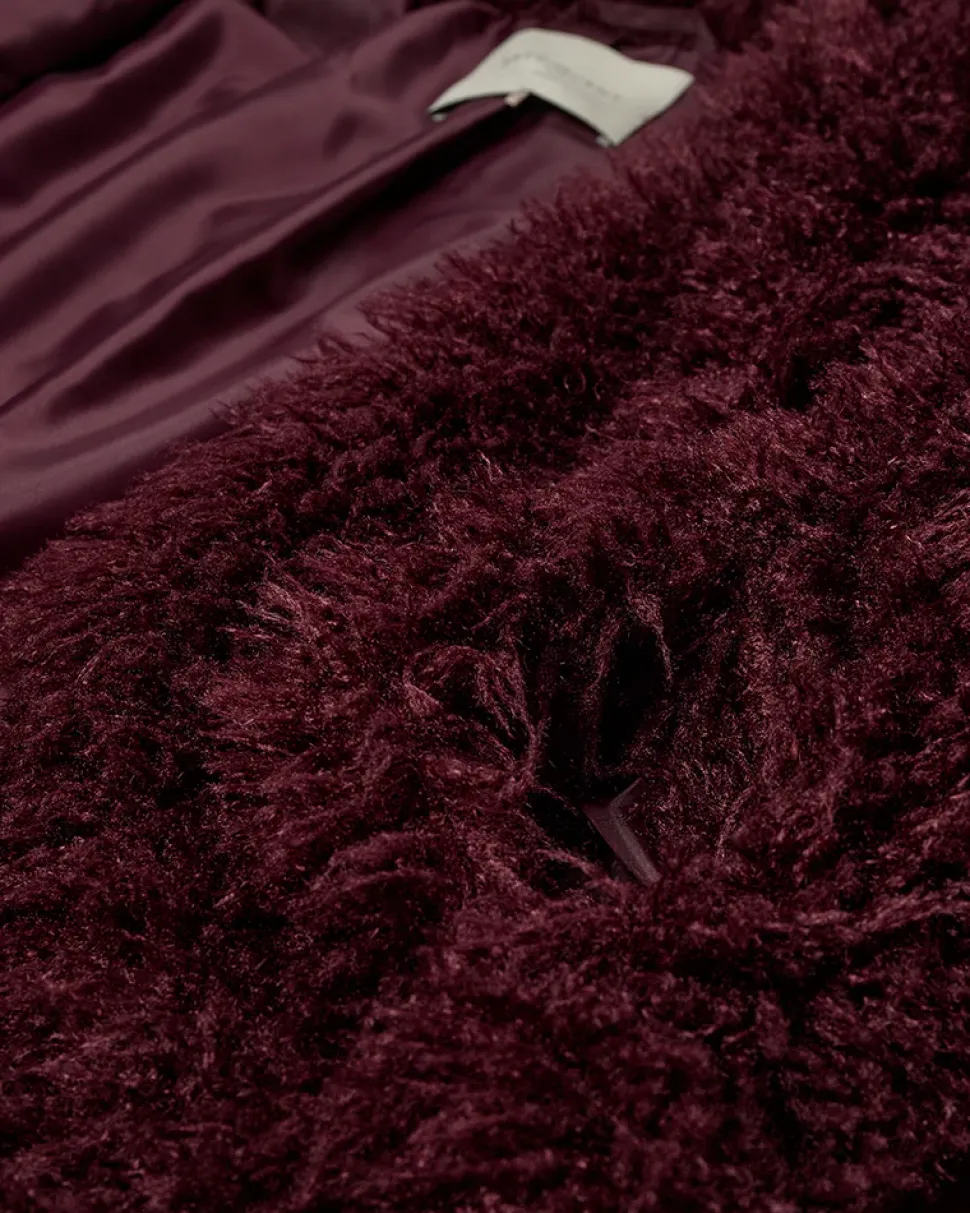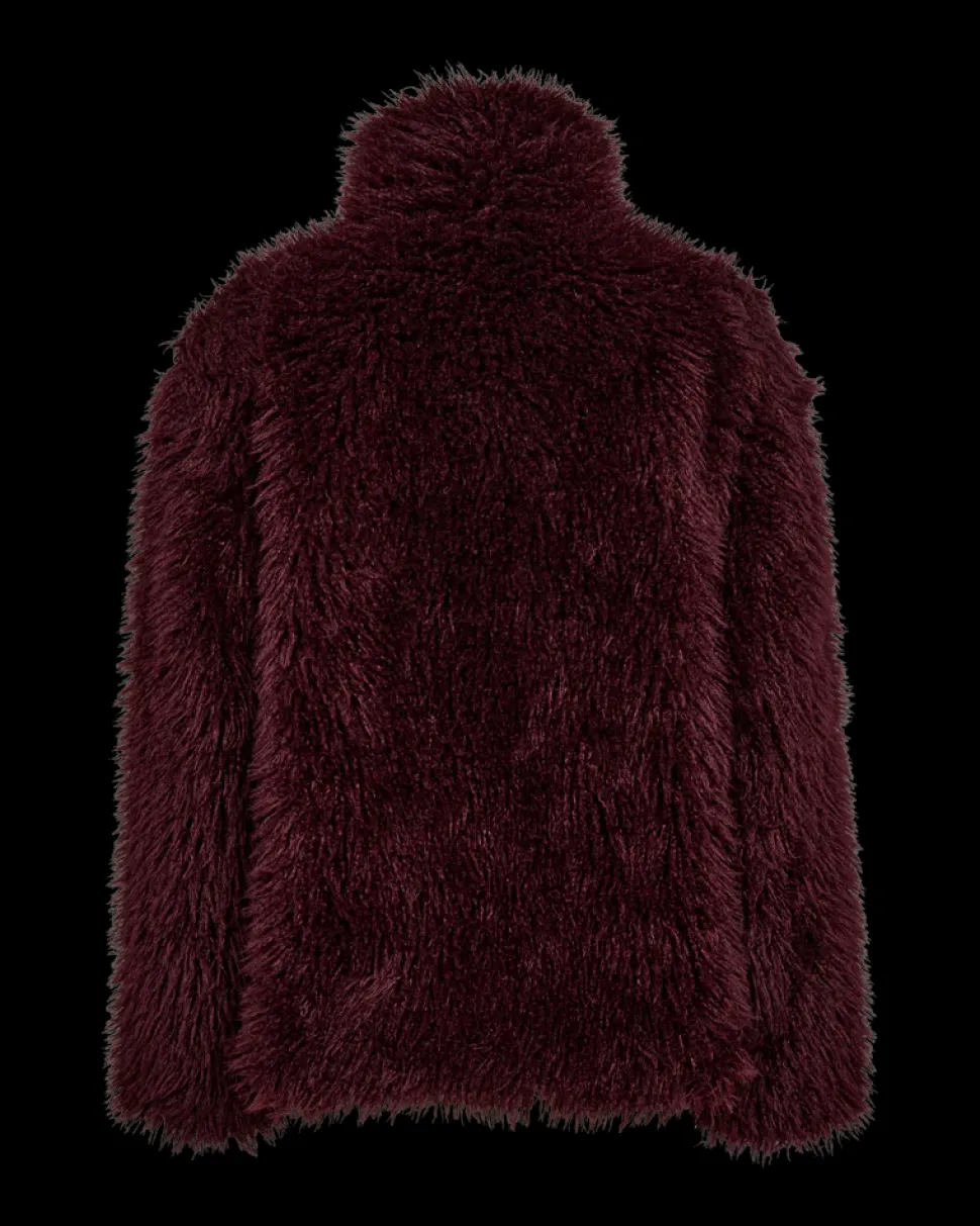 Freequent-takki pehmeästä, hapsutetusta tekoturkismateriaalista, jossa on vuori. Lisäksi takin yksinkertainen muotoilu, pitkät hihat, vetoketju edessä, korkea kaulus sekä piilotetut sivutaskut.