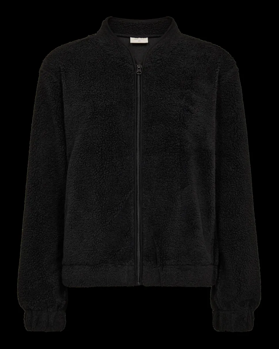 Freequent-pilottitakki pehmeästä nallekarhumaisesta materiaalista. Takissa on yksinkertainen siluetti, vetoketjukiinnitys, kaulus, etutaskut sekä joustava helma ja pitkät hihat.