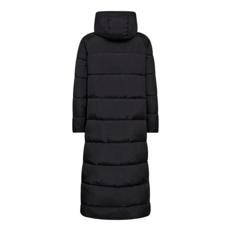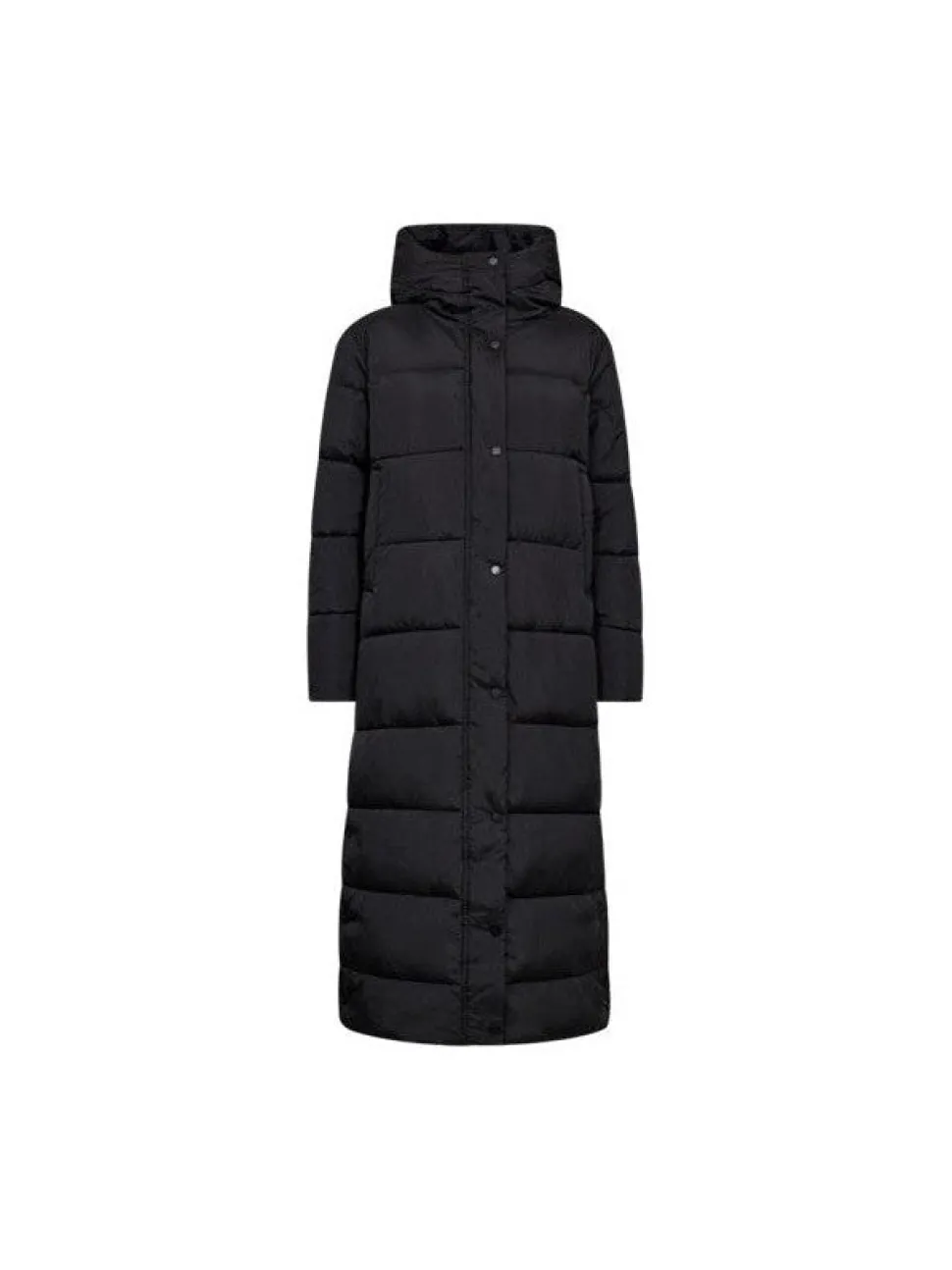 Freequentin takki, joka on valmistettu pehmeästä, vanutetusta materiaalista. Takissa on pitkä siluetti, vetoketju- ja painonappikiinnitys, sivutaskut, huppu ja sivuhalkiot.